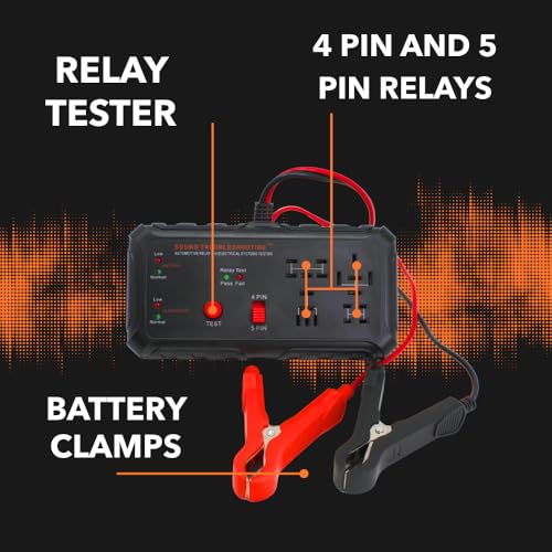 TESTS 4 & 5 PIN RELAYS: Quickly spot bad relays before they cause issues. This tool helps you confirm if your relays are firing correctly, removing the guesswork when diagnosing electrical issues. USA Patented #9,423,462BATTERY & ALTERNATOR CHECKER: Connect directly to the vehicle battery with the included clamps to verify whether the battery is charged and the alternator is producing the correct output.DURABLE, COMPACT, AND READY TO USE: Our tools are built tough for any situation. Garages, workshops, and roadside toolkits, this tester is lightweight, portable, and engineered to last for years of reliable service.SIMPLE PUSH-BUTTON OPERATION: Just plug in the relay, hit the TEST button, and watch the lights tell you everything you need to know. No complicated setup, no advanced mechanic skills required.BATTERY & ALTERNATOR HEALTH CHECK: Hook up to your car battery with the heavy-duty clamps to see if your battery’s holding a charge and your alternator is producing the correct output.