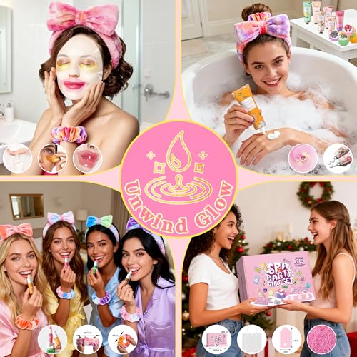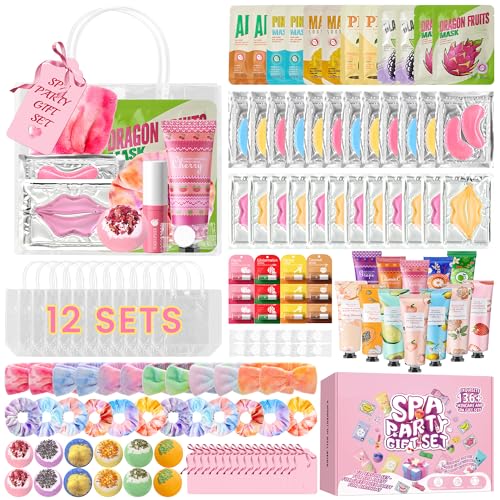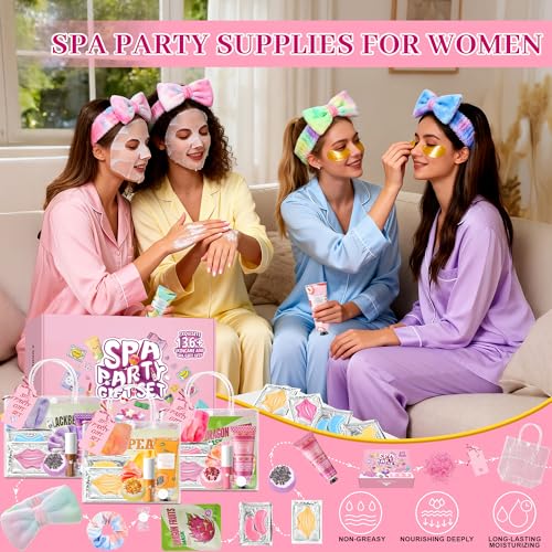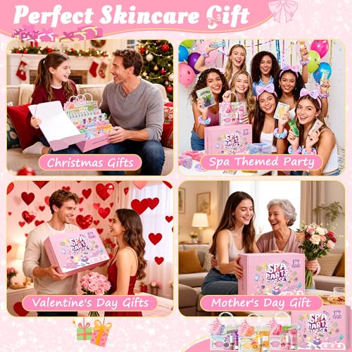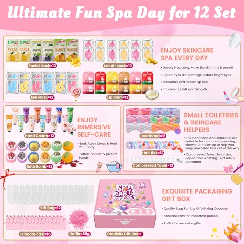 【136 PCS Deluxe Party Favors】The pink spa gifts box contains 136 items — hand cream, lip balm, face mask, under eye patches, mouth mask, compressed towel, bath bombs, headband, hair ties, party favor bags, gift tags, and an elegant gift Box. Surprise and delight every woman at your party with this beautifully curated deluxe spa gift set, designed to bring moments of relaxation, self-care and joy.【Spa Gift Bags for Women】Perfect for spa gifts, self care gifts, get well gifts, thank you gifts, care package, teacher appreciation gifts, graduation gifts, birthday gift, retirement gift, relaxation gifts, sister gifts, bridesmaid gifts, bridal shower gifts, wedding gifts, nurse gifts,sleepover party, bachelorette party favors and birthday gift for women — to make her feel special and loved.【Unique Birthday Gifts for Women】Perfect as 8 -15 year old girl birthday gifts,16th birthday gifts,18th birthday gifts, 30th birthday gifts, 40th birthday gifts, 50th birthday gifts, 60th birthday gifts for women female. Also suit at Christmas, Mother's Day, Thanksgiving, Valentine's Day, etc — ideal party favors for everyone.【Best Gifts for Women】It is well-crafted party favors bags filled with love,care and warmth, an ideal birthday gift for all important lady in your life. Great for mom, sister, best friendship, wife, girl,grandma, daughter, coworker, teacher, boss, nurse, elder, kid, neighbor,or anyone who deserves a little pampering.【Luxurious Spa Experience for Her】Carefully pack skincare and spa essentials into party favor bags, add a heartfelt message gift cards, and display them at your gathering. This stylish and compact gift is the perfect choice to pamper teens, moms, and any woman who loves daily self-care.