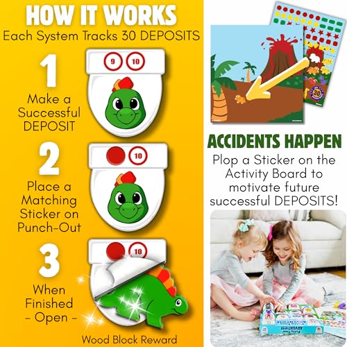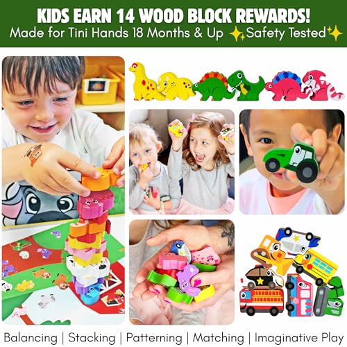 EDUCATIONAL MONTESSORI TOY SET – 14 dinosaur blocks designed for stacking, sorting, and balancing while building focus and coordination.ADVENT CALENDAR OF DISCOVERY – Reveal new wooden blocks each day for hands-on fun that keeps toddlers engaged and motivated to learn.POSITIVE BEHAVIOR REINFORCEMENTS – Daily rewards make milestones fun, helping toddlers build confidence and healthy habits.SAFE, NON-TOXIC, AND DURABLE – Certified for 18+ months and tested for choking hazards, sharp edges, and materials safety for lasting play.COMPLETE SET & BONUS EBOOK – Includes 14 wooden dinosaur blocks, activity board, reward stickers, and “BaBa Goes to the Bathroom” step-by-step potty training eBook delivered by email.