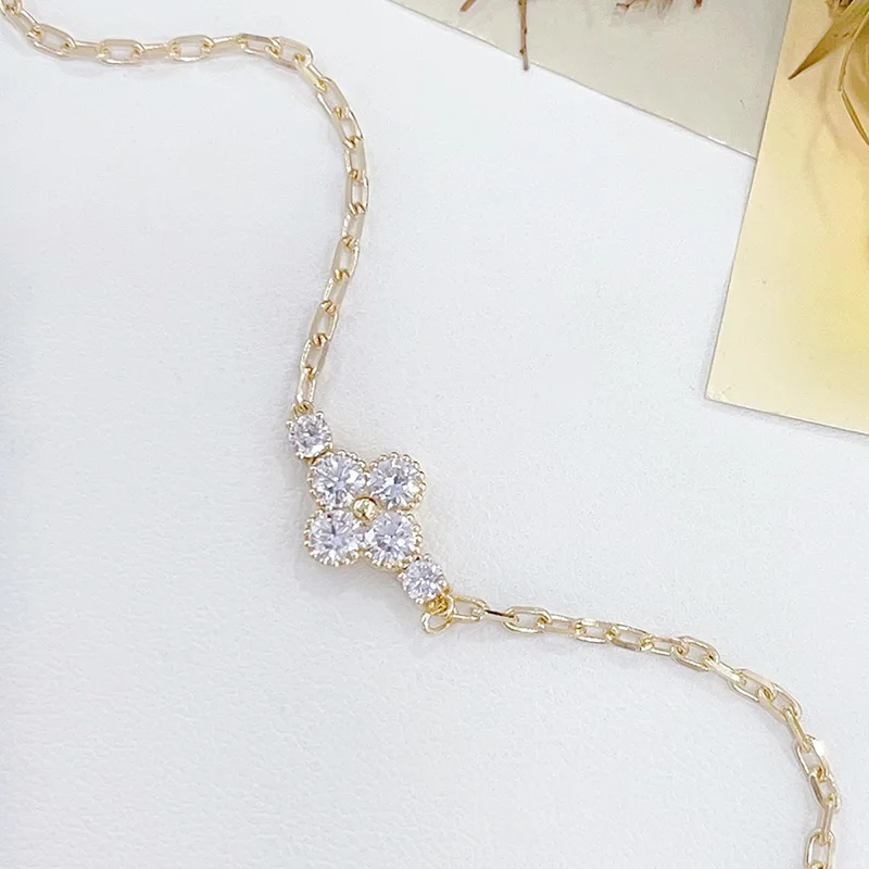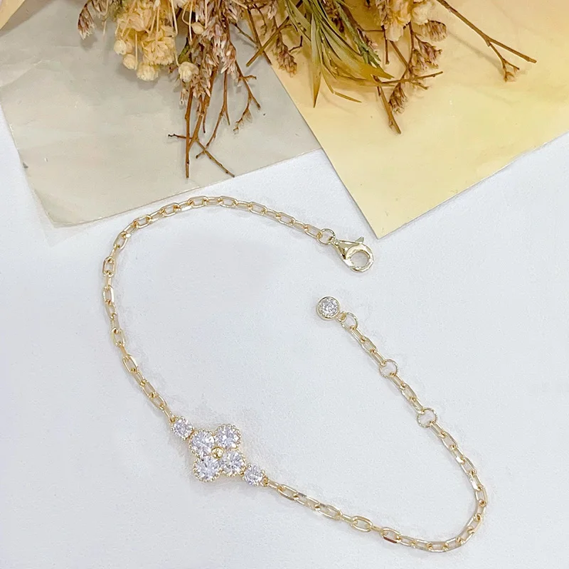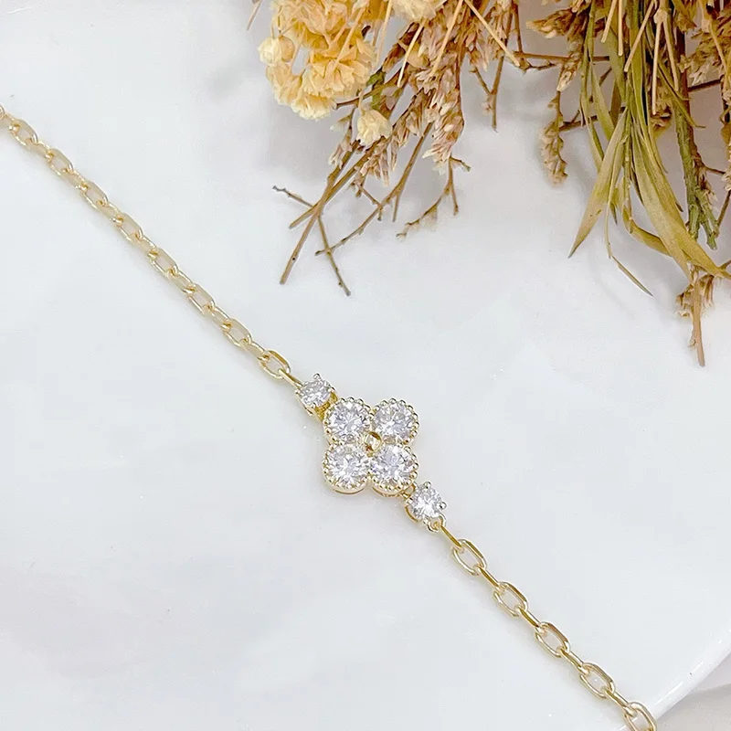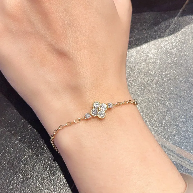 18K Yellow Gold Total 1.03ct Lab Grown Diamond Bracelet Four-leaf Shape Classic Lab Diamond Bracelet Anniversary Gift for Wife