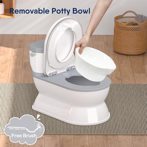 2-in-1 Toddler Potty Training Toilet - Larger Potty Chair & Detachable Training Seat for Boys & Girls Ages 1-3 with Flushing Sound, Wipes Storage, Toilet Paper Holder - Grey