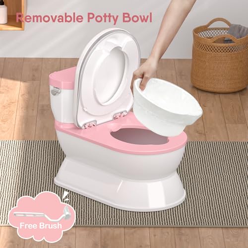 2-in-1 Toddler Potty Training Toilet - Larger Potty Chair & Detachable Training Seat for Boys & Girls Ages 1-3 with Flushing Sound, Wipes Storage, Toilet Paper Holder - Pink
