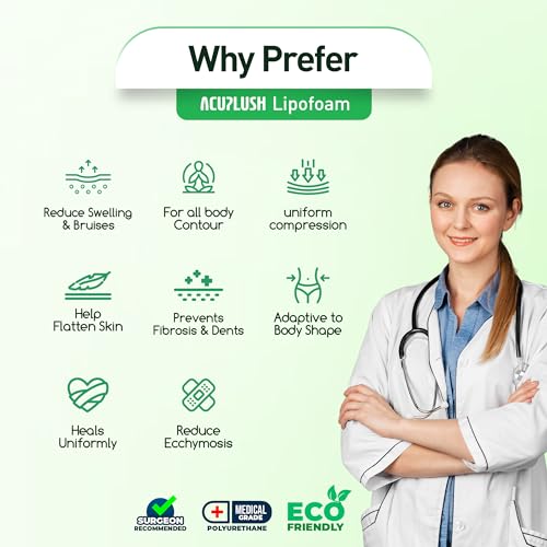 ENHANCED RECOVERY AID: AcuPlush Lipo Foam speeds up the healing process after Liposuction, C-Section, Abdominoplasty (Tummy Tuck), BBL, Cellulite Reduction and other surgical operations. The soft foam provides gentle support and cushioning to the affected areas during post-surgical healing.VERSATILE APPLICATION: AcuPlush Lipo Foam is available in sheets of 8”x11” that can be used as a whole or it can be readily trimmed into your desired size and shape to better fit your needs. You can even combine 2 or more Lipo Foam pads to 360 your abdomen. Ideal for use in areas of abdomen, thigh, arm, chin or any other area where padding is required making it the ideal foam board for lipo recovery.BOOST RECOVERY AND REDUCE DISCOMFORT: Our Lipo Foam is made of Medical Grade Polyurethane that is extremely soft and perfectly matches the contours of the skin providing superb comfort and support to the surgical site. It forms a foam barrier between compression garment and tender skin and speeds up healing and decreases pain and discomfort.LONG-TERM SCAR MANAGEMENT: AcuPlush Lipo Foam can be used in later stages of healing to minimize the scar tissue proliferation giving a smooth and uniform shape to healed tissue. The Using the ab board leaves you with smooth and level skin.IDEAL FOR POST LIPOSUCTION: AcuPlush Lipo Foam Faja Boards offers supreme comfort and excellent lipo recovery. It reduces swelling, alleviates pain, improves healing and ensures that your post-op journey is as stress free as possible.