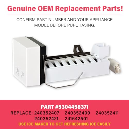 Manufacturer Part 5304458371 ICE MakerPart Number 5304458371 Replace: 240352407, 240352409, 240352411, 240352421, 241642501Compatible with Frigidaire, Electrolux, Crosley, KenmoreA Genuine Replacement OEM PartAll Parts Have Passed Factory Quality Inspection for Proper Fit