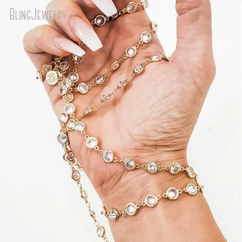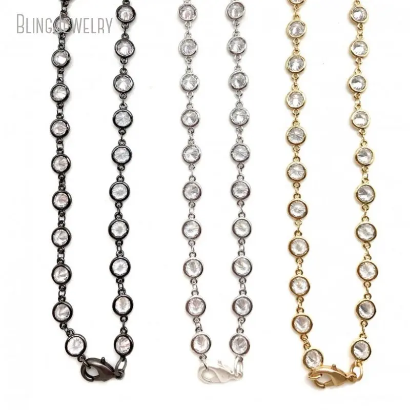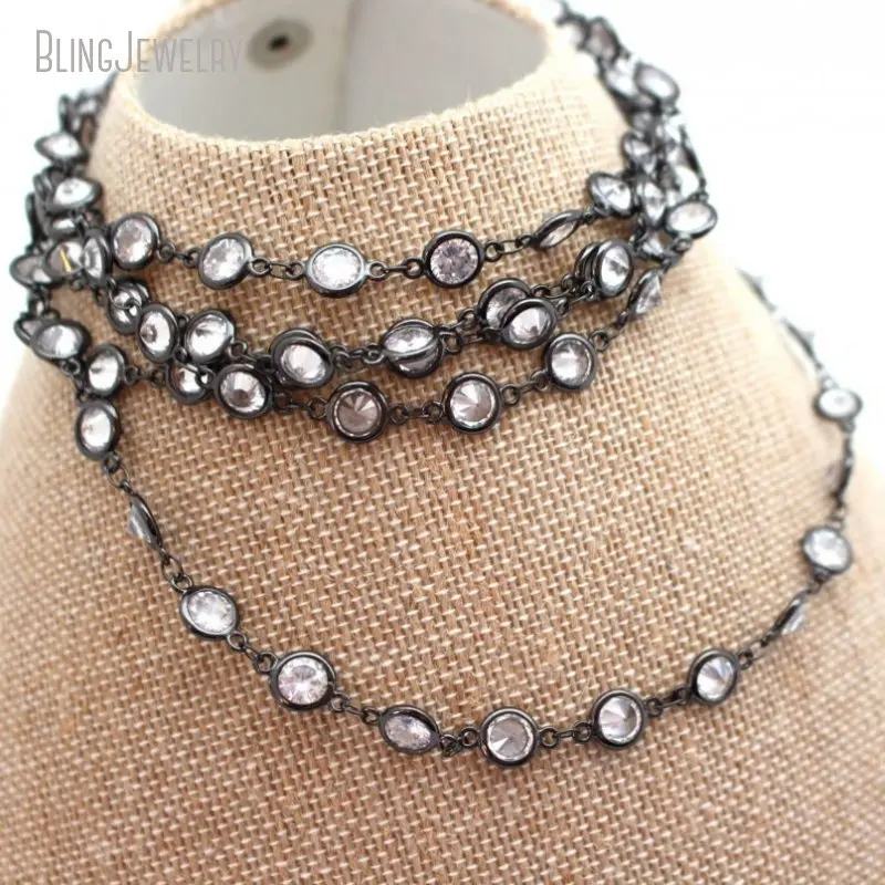 5pcs Gunmetal Gold Color Cubic Zirconia Chain Necklace Long Layers Jewelry Women