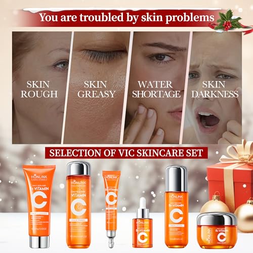 6-Piece Hydrating Skincare Set with Vitamin C & Niacinamide, Face Care Kit Includes Toner, Serum,Cleanser,Moisturizer, Eye Cream & Body Lotion , Unique Gift for Women