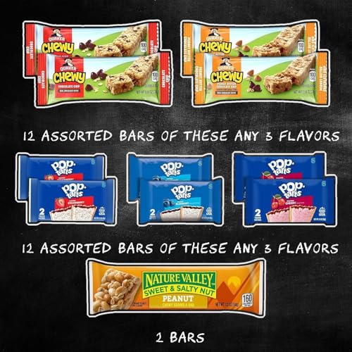 Enjoy the ultimate granola bars bulk variety pack — a perfect mix of flavors for families, schools, or the office. Great for snack time, lunchboxes, or a quick breakfast on-the-go.Each box comes with bulk granola bars individually wrapped for freshness and portability. Ideal for travel, giveaways, or keeping in your car, desk, or bag.Our granola bars variety pack bulk offers a satisfying assortment of snacks for all ages. Whether you're buying granola bars in bulk or need granola bar bulk for daily use, we've got you covered.From granola bars variety to bulk healthy snacks individually wrapped, our breakfast bars variety pack is perfect for anyone needing granola bar bulk, healthy snacks in bulk, or a healthy snack for office settings.For transparency: Each pack of Special K Pastry Crisps and Pop-Tarts Frosted Variety contains 2 bars per pack. So, each of these will be counted as 2 individual packs in the total pack count.