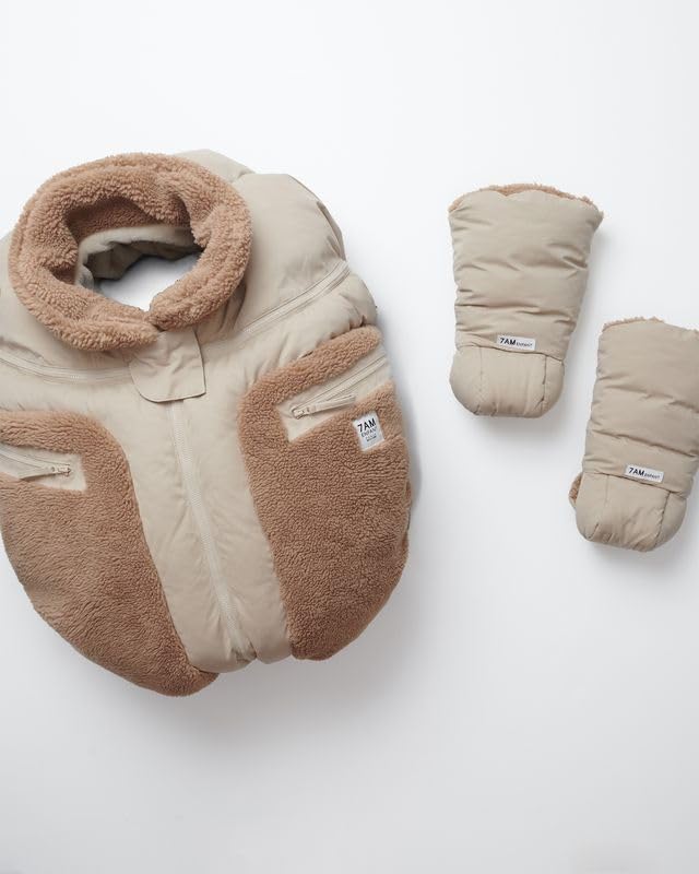 7AM Enfant Car Seat Covers - Cocoon Baby Cover for Boys & Girls, Rain & Snow Repellent, Breathable Windproof, Center Zipper, Universal Fit for Infant Car Seat (0-12M) (Oat, Applique Cacao)