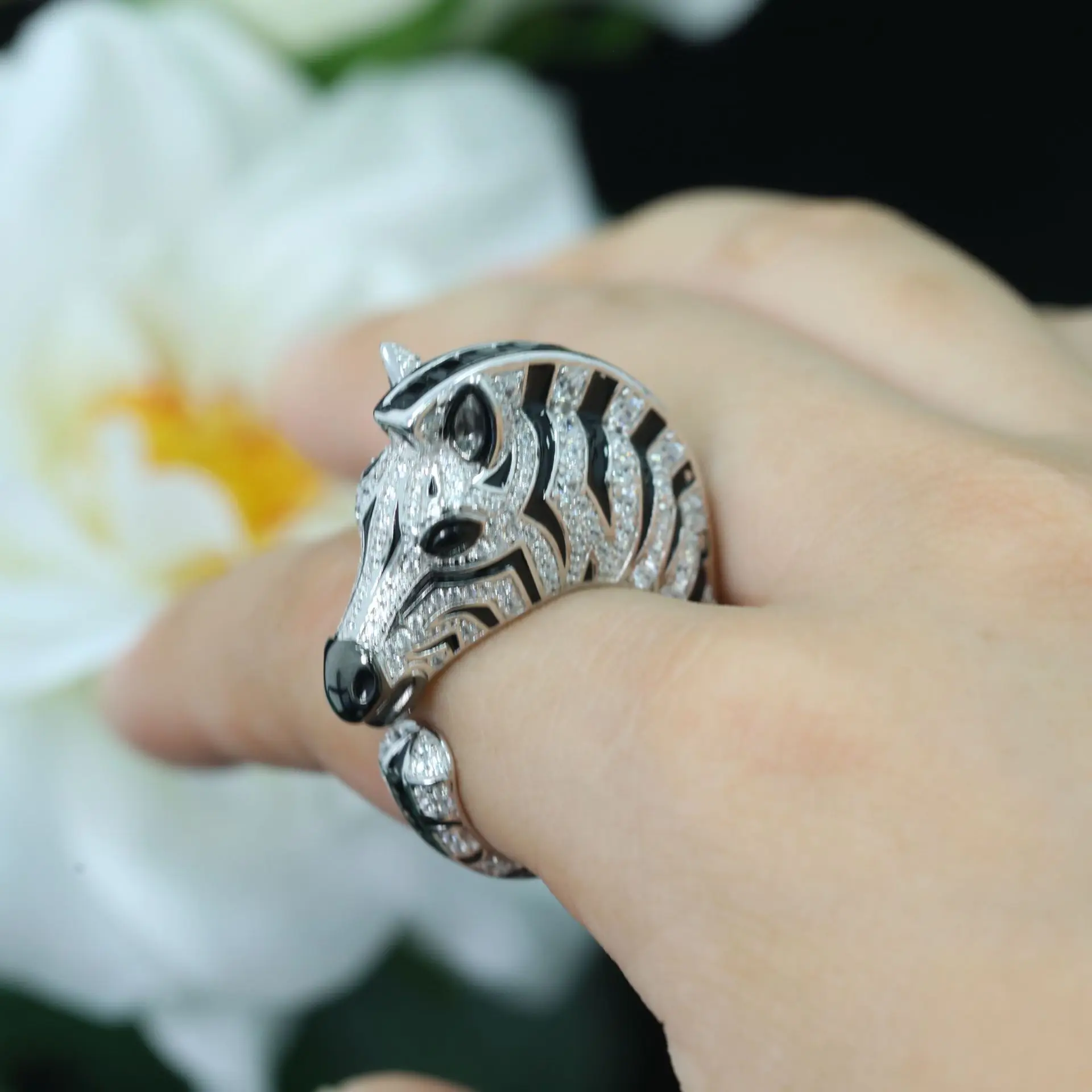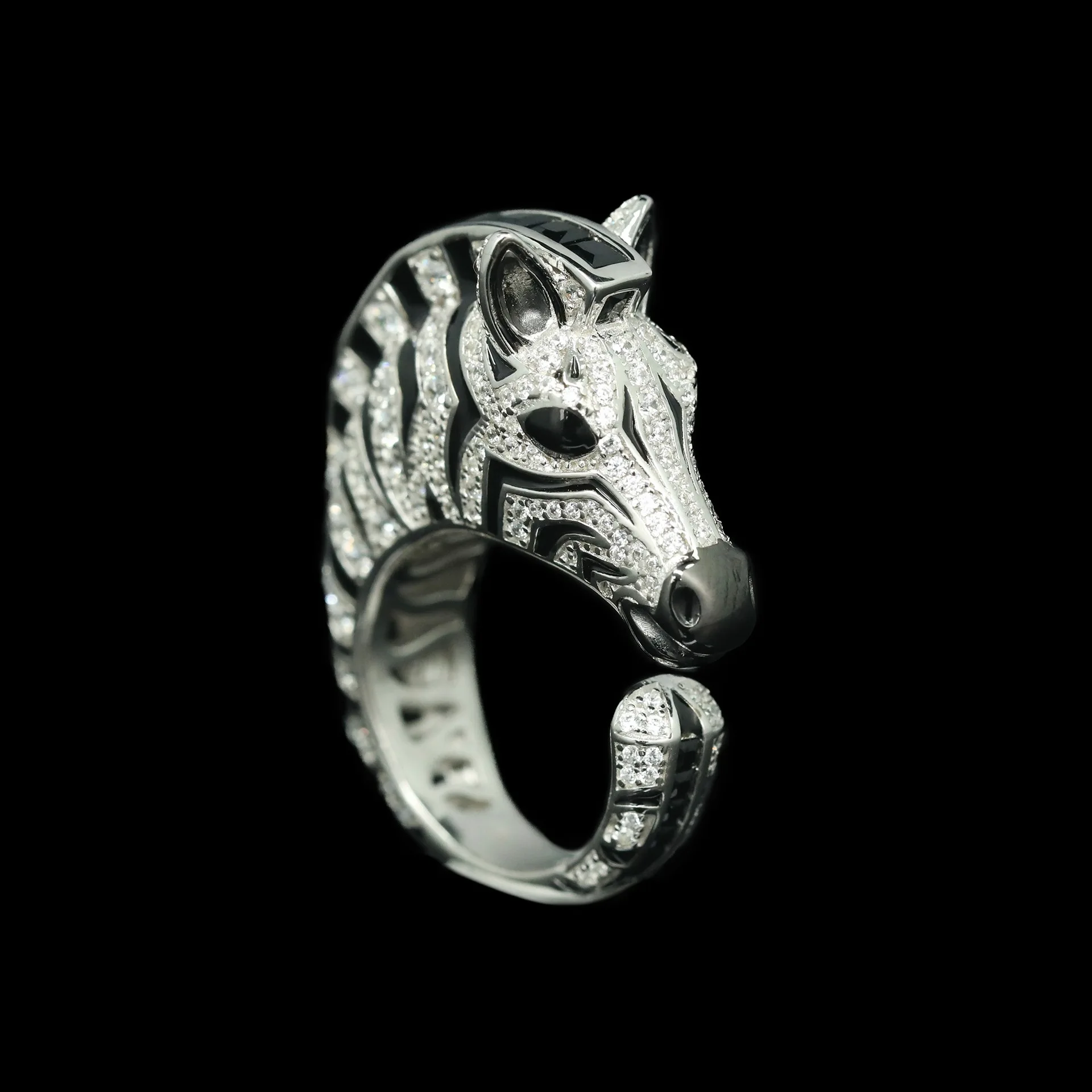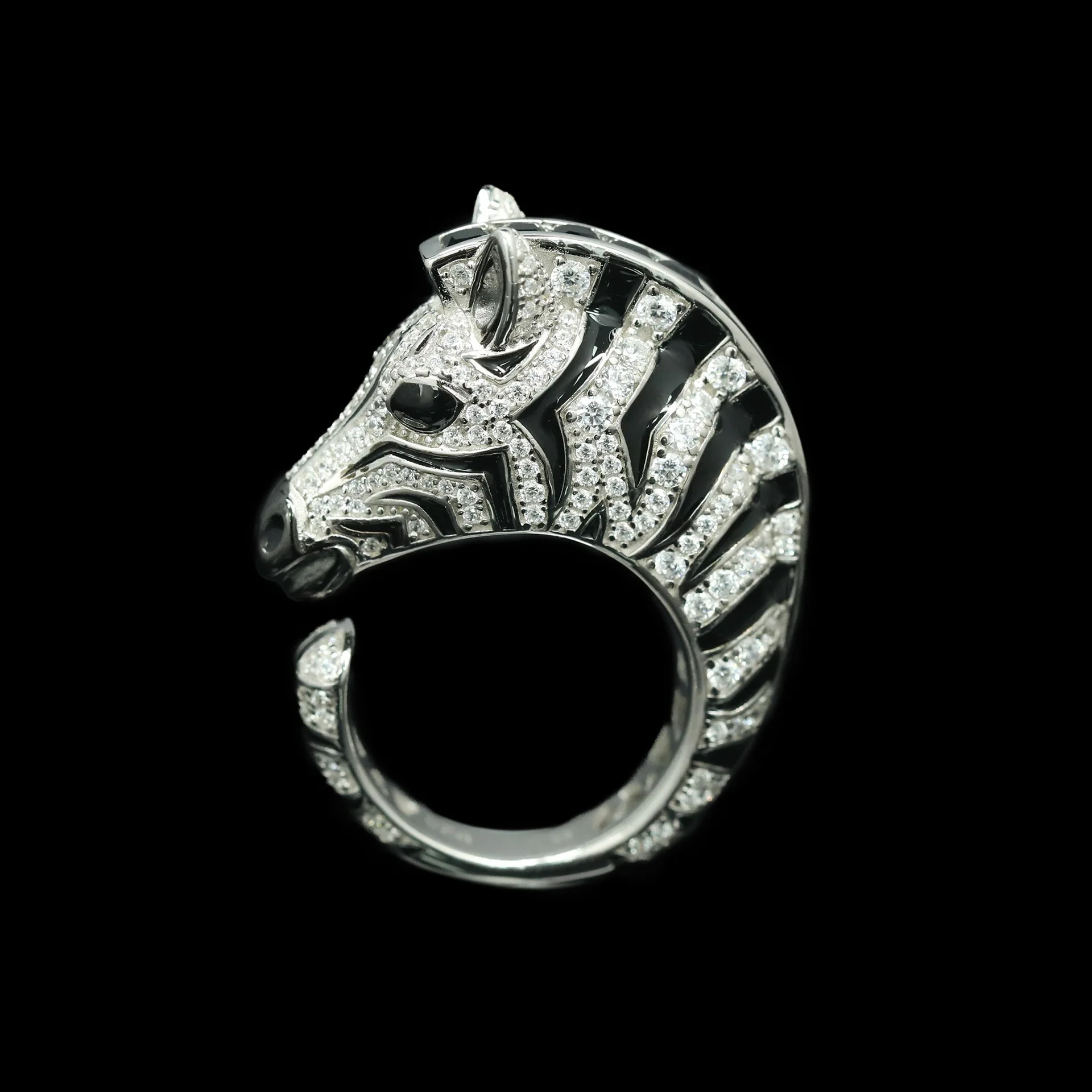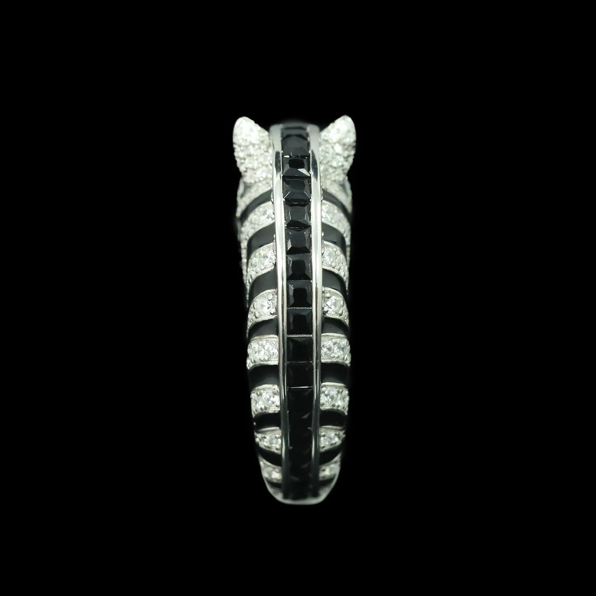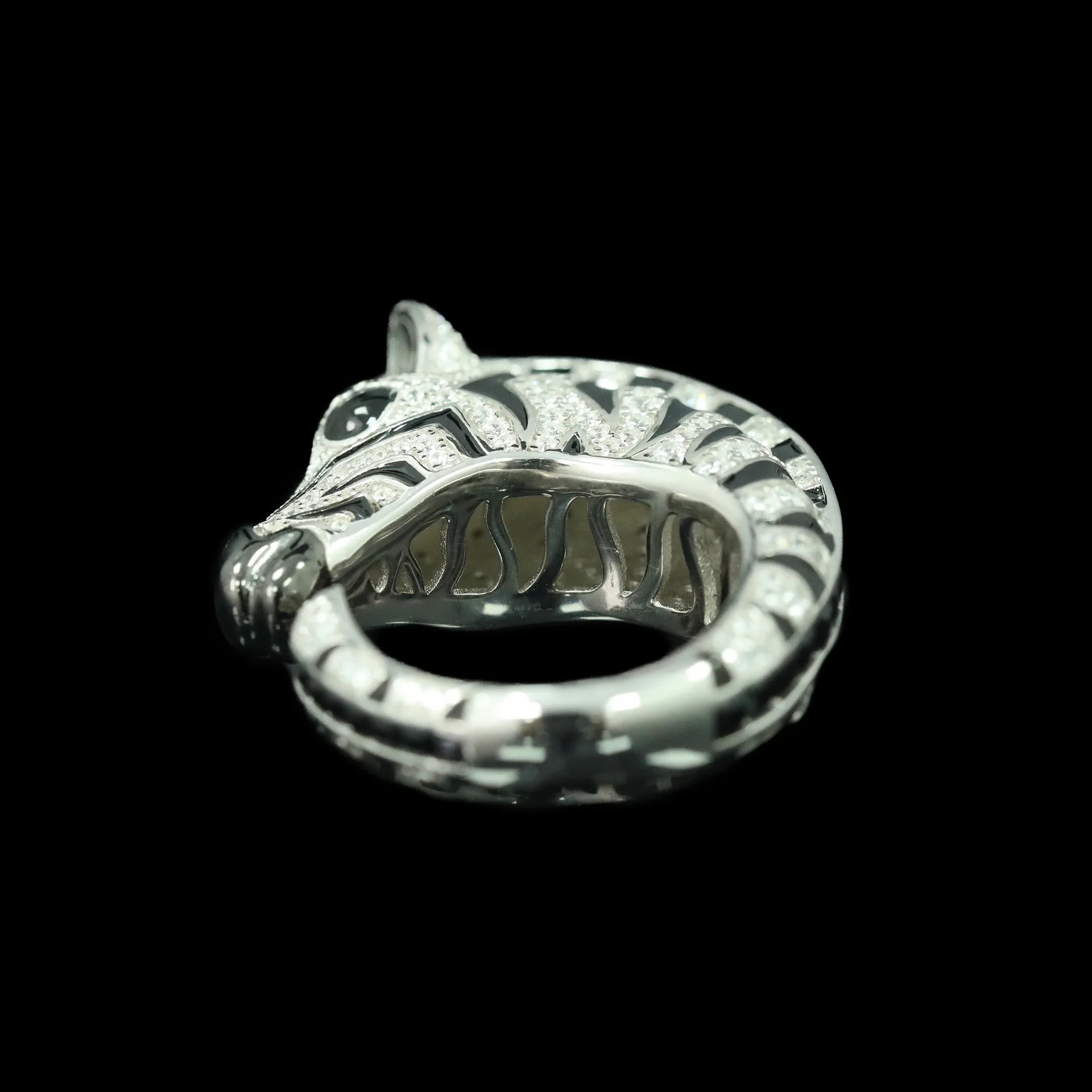 925 Gold-Plated Ring with High-Carbon Diamond, Zebra Black Enamel – Trendy & Versatile Niche Jewelry for Women