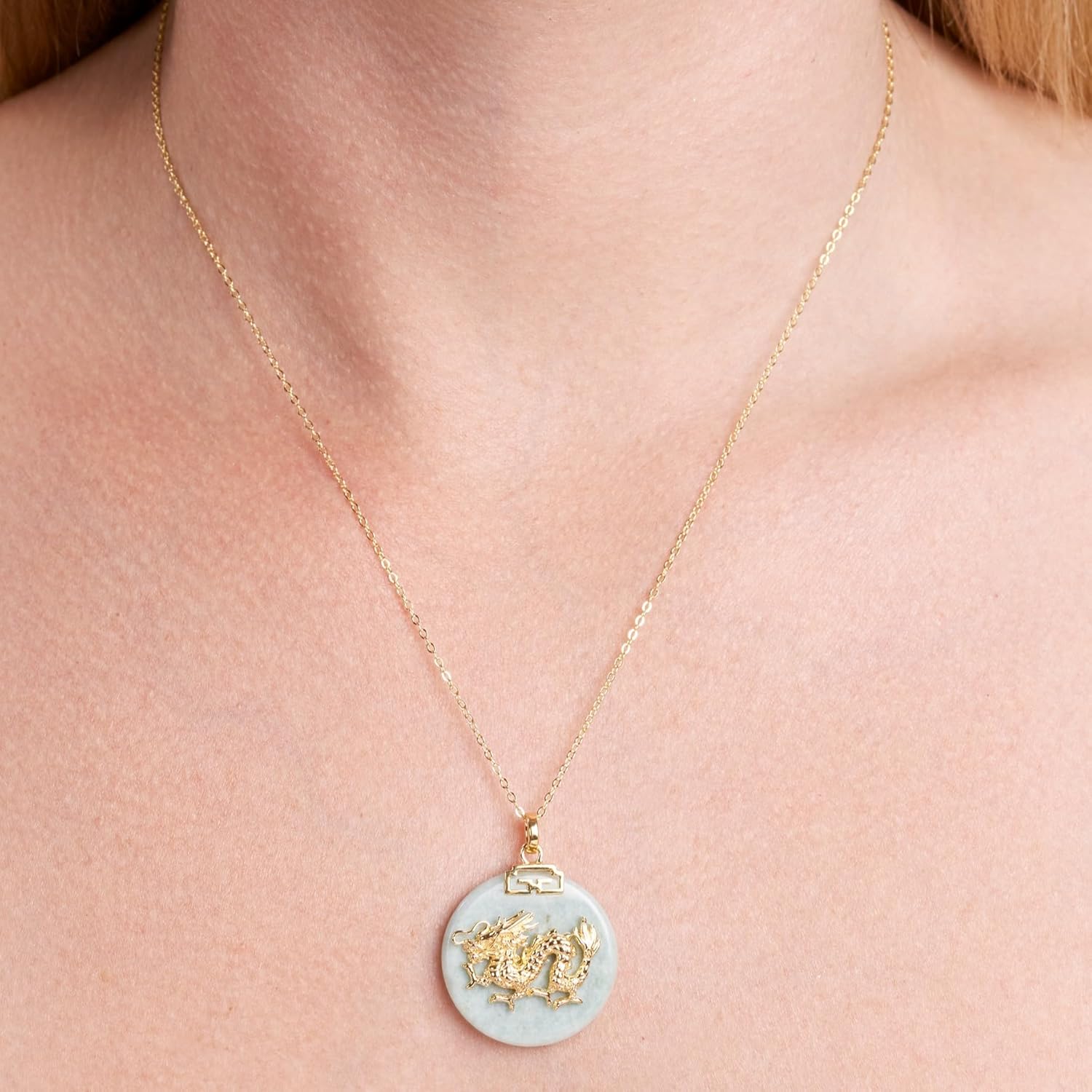 .925 Sterling Silver 18K Gold Plated Chinese Zodiac Sign Pendant Necklaces for Women - Hypoallergenic Genuine Green Jade Gold Necklace for Women Zodiac Year Jewelry, 18 inch Chain