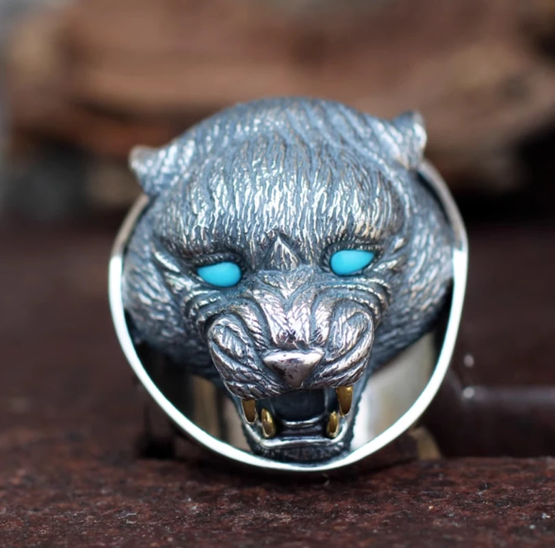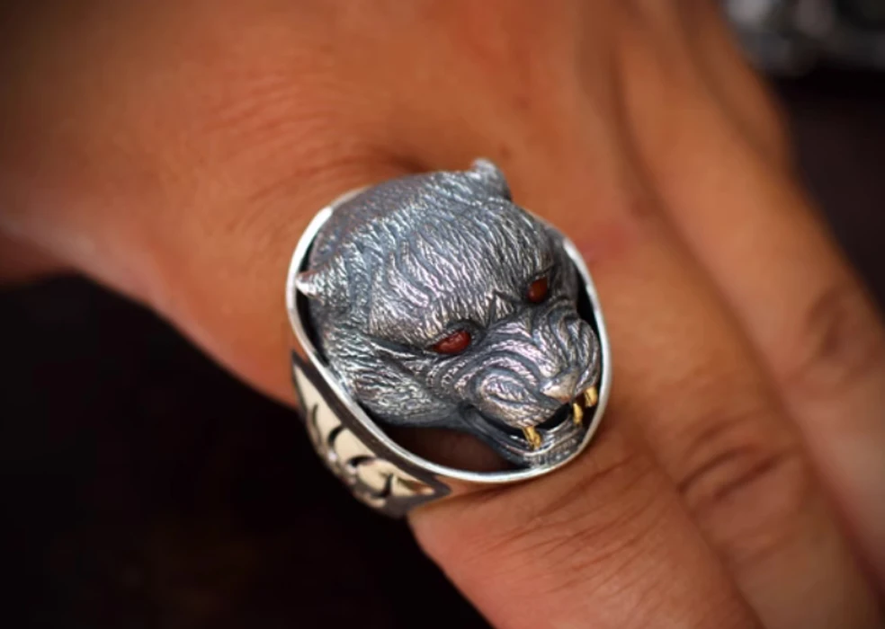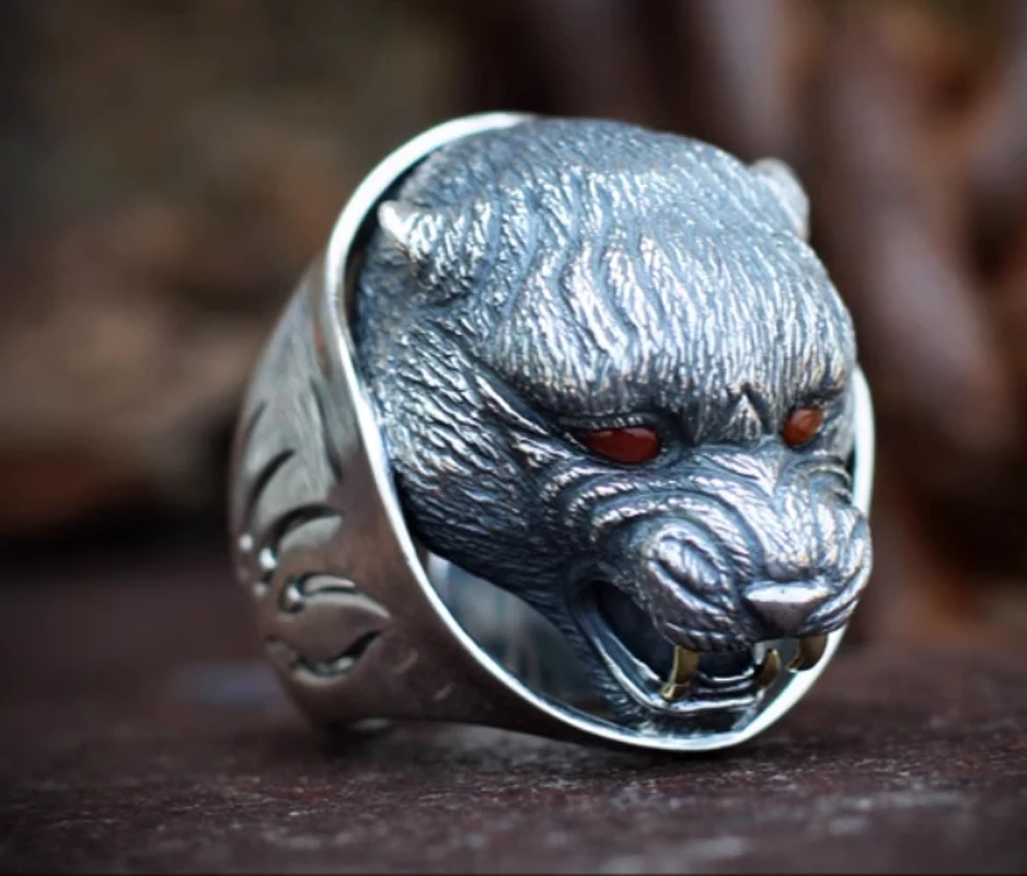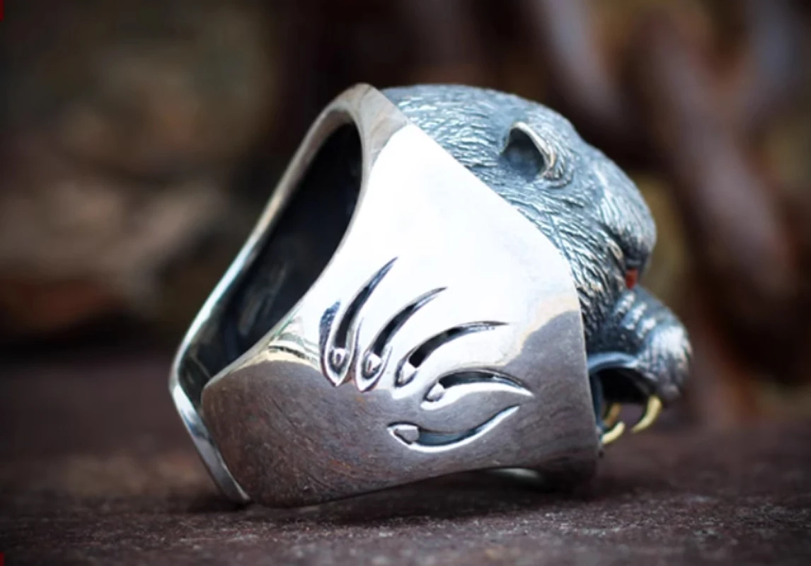 925 Sterling Silver & carnelian bear Men's big ring rings jewelry A6369