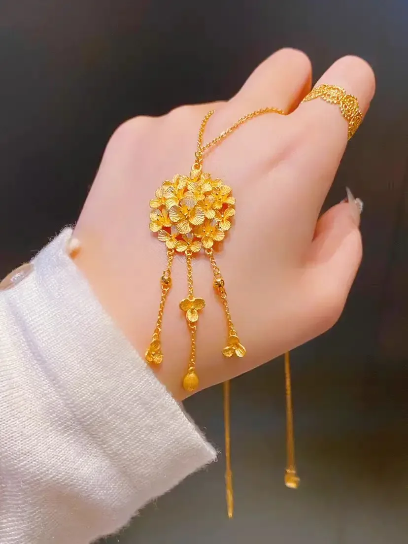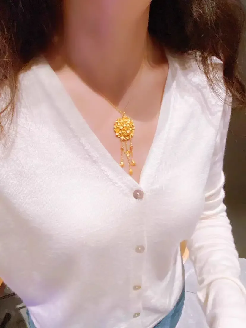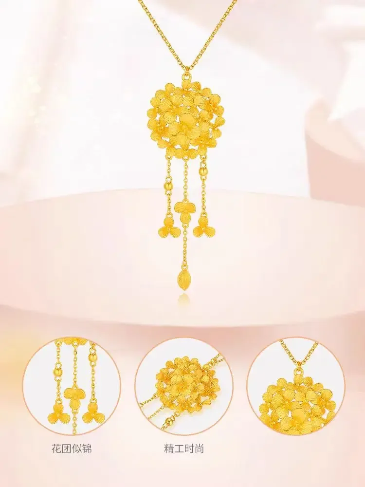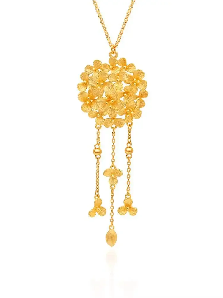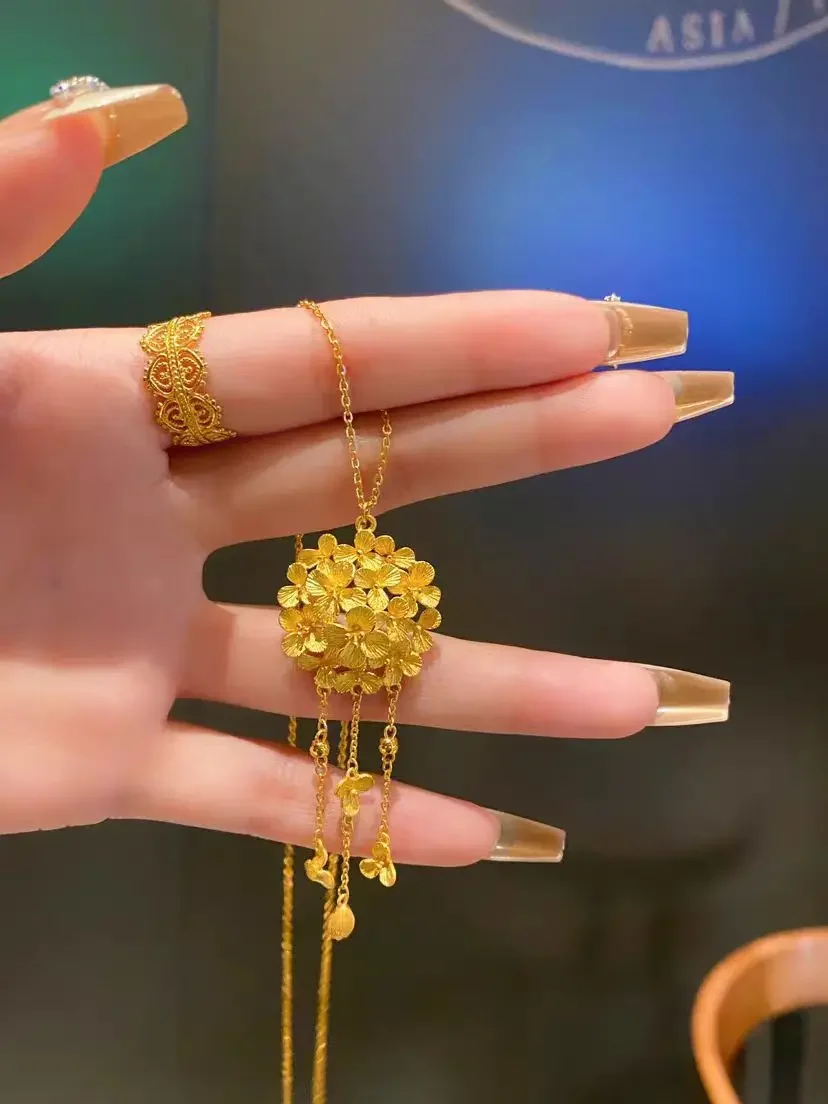 9999 real gold 24K yellow gold Hydrangea Tassel Necklace Fashion Antique Niche