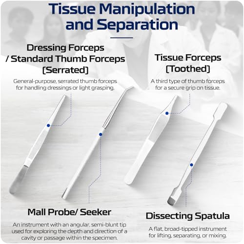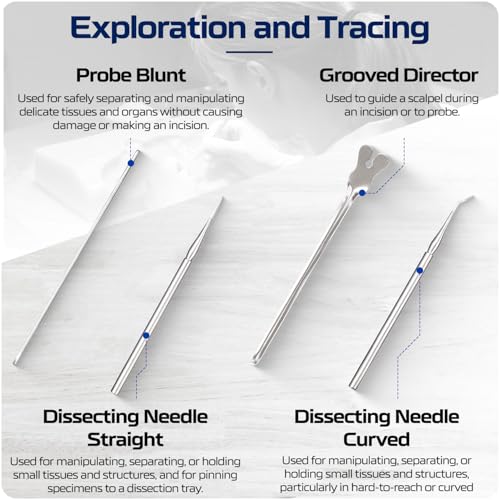 PROFESSIONAL-GRADE PRECISION: Meticulously crafted instruments made from premium German stainless steel - superior to standard "stainless" tools that rust or corrode, our medical-grade instruments maintain surgical sharpness and precisionCOMPREHENSIVE ANATOMY LAB SOLUTION: Complete set includes 3 surgical scalpel handles with 20 sterile blades, precision scissors, multiple specialized forceps, tissue clamps, probes, and advanced dissection tools for college-level anatomy, biology, and veterinary studiesGERMAN ENGINEERING EXCELLENCE: While other brands compromise on materials, BioPrecision uses only certified German stainless steel that exceeds medical standards - the same quality used in professional surgical settingsSUPERIOR ORGANIZATION & PROTECTION: Premium microfiber-lined case with individual instrument slots prevents movement during transport and protects fine cutting edges - includes specialized compartments for blades and small componentsLIFETIME PROFESSIONAL GUARANTEE: Unlike competitors offering limited warranties, every BioPrecision Advanced Kit is backed by our unconditional lifetime guarantee - if any instrument fails to perform to professional standards, we'll replace it immediately