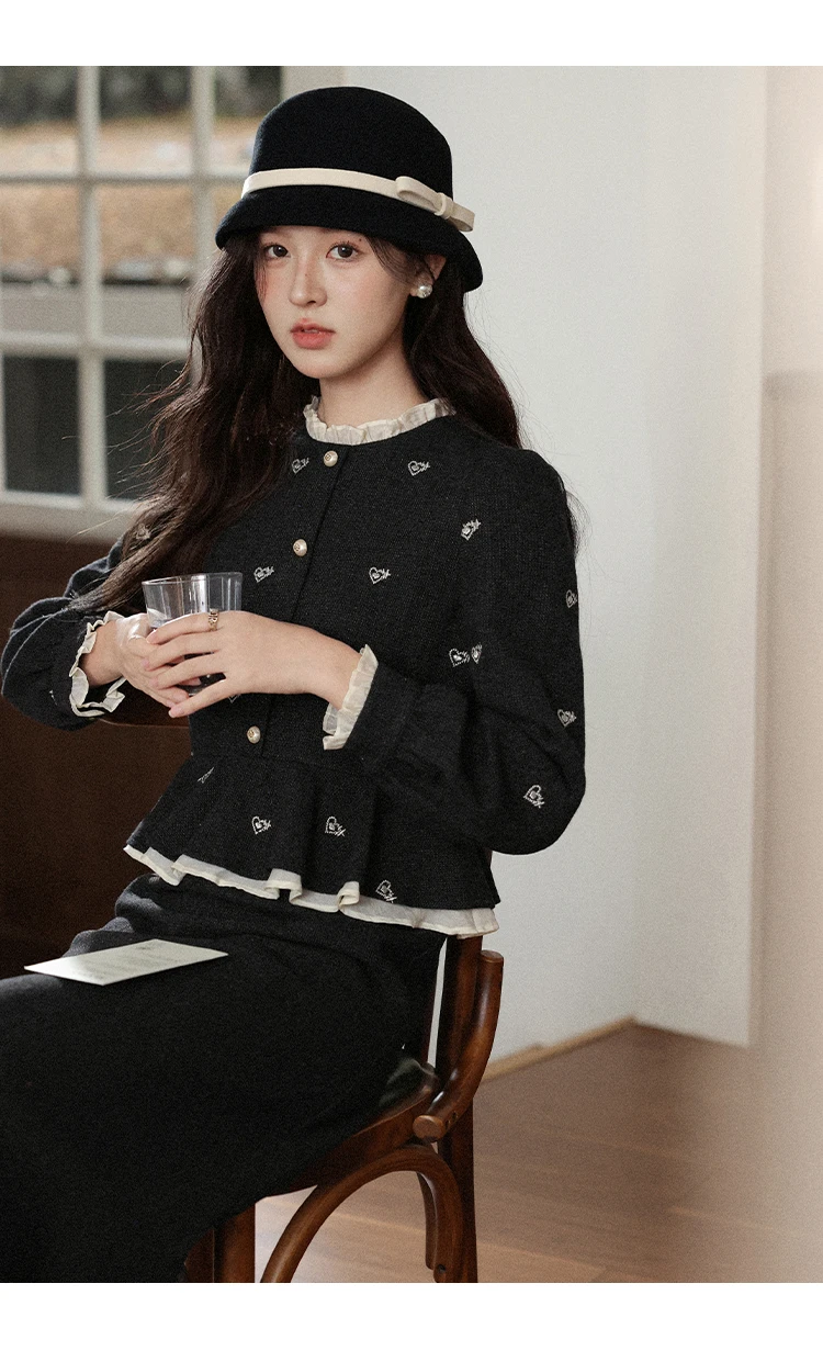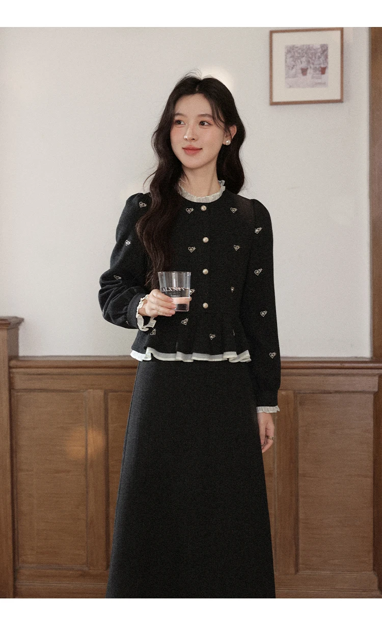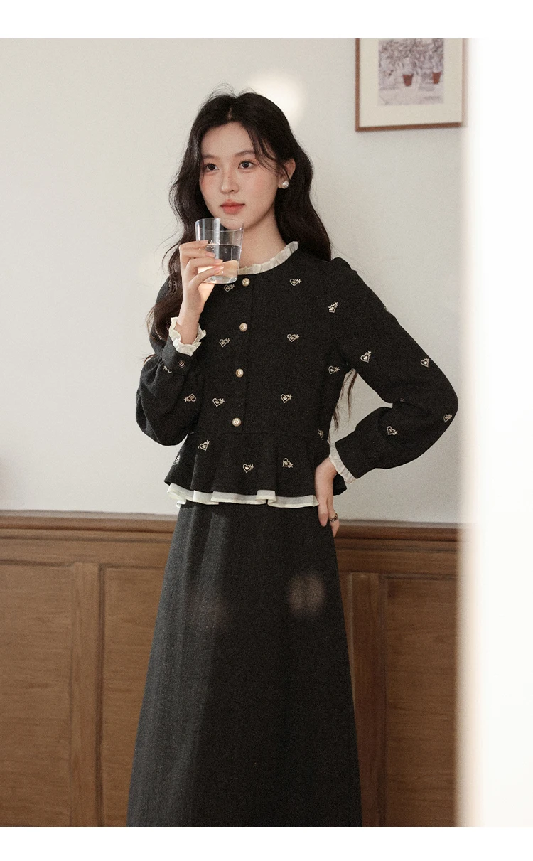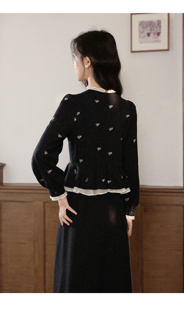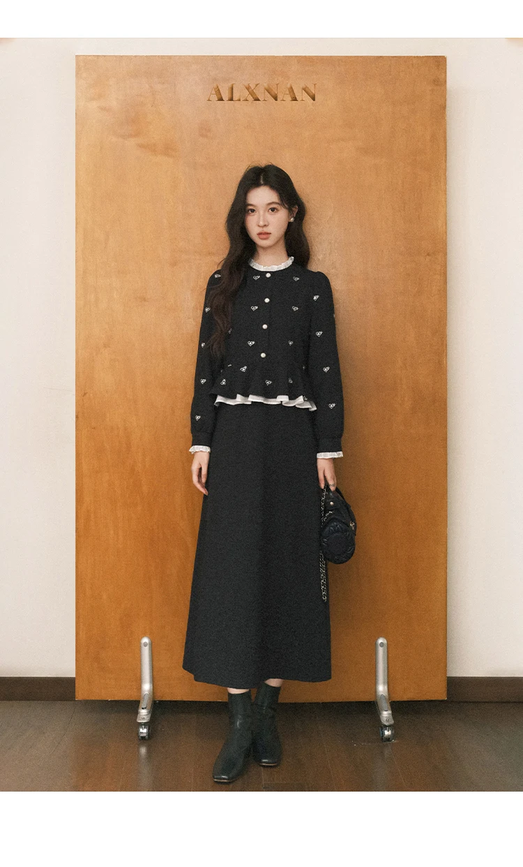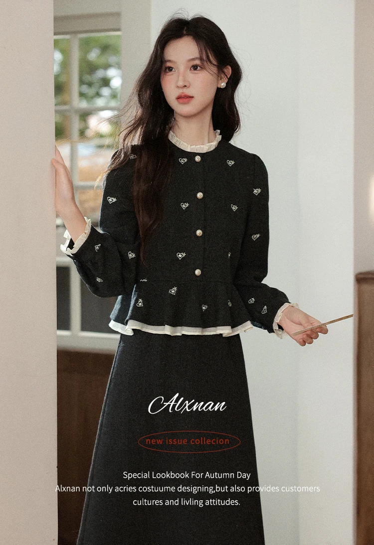 ALXNAN Woman's Dress Fake Two-piece Lace Trim Patchwork Printed Back Zipper Dress Breathable Luxurious Ladies Clothing DYL662161