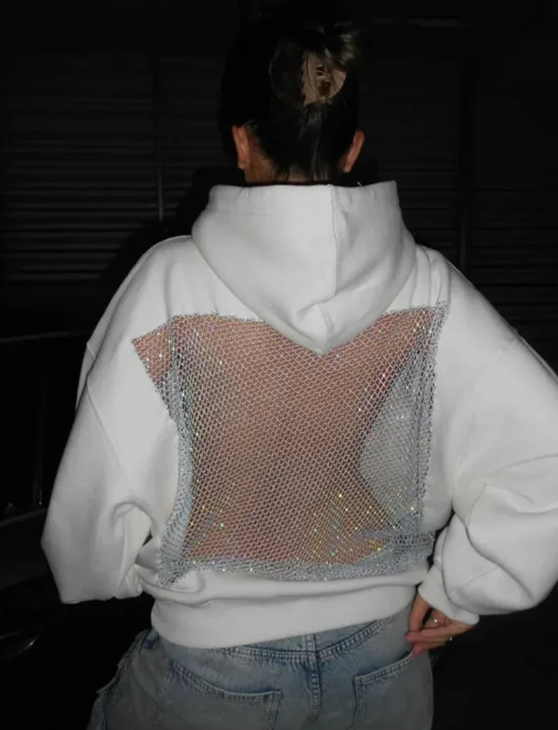 American Gothic Sexy Hollow Mesh Hoodie Y2K Clothes Womens Fashion Translucent Pullover Sweatshirt Casual Long Sleeves Jacket