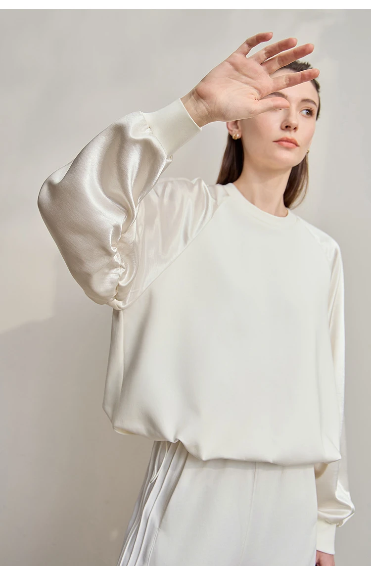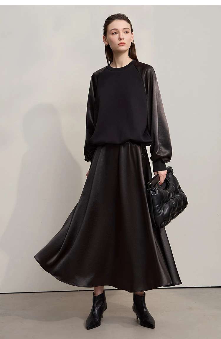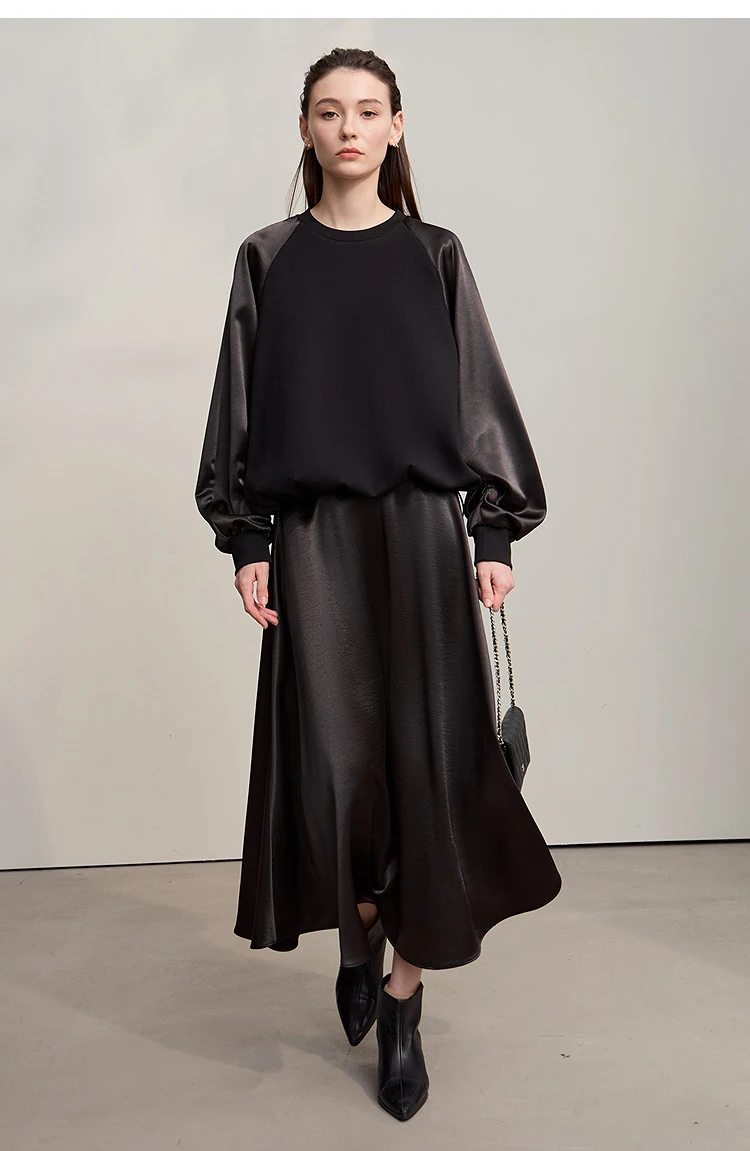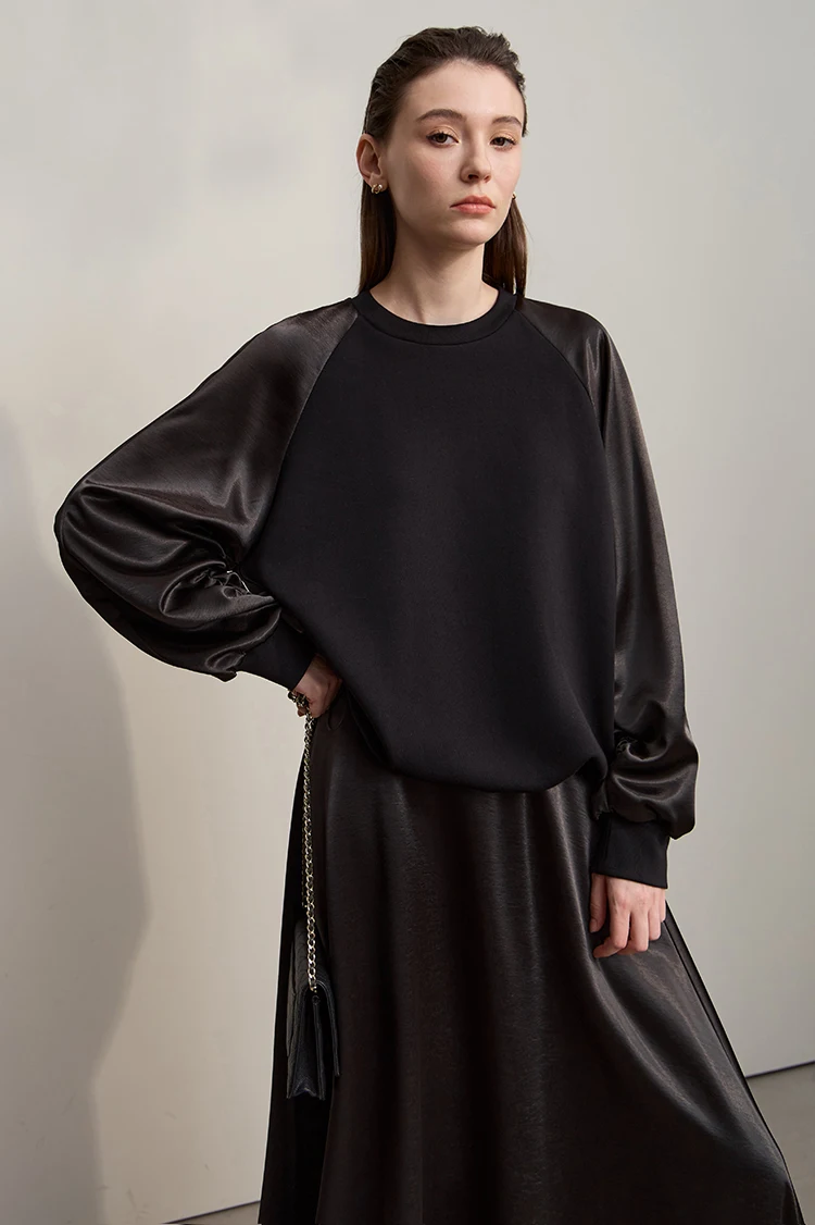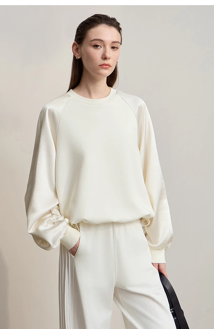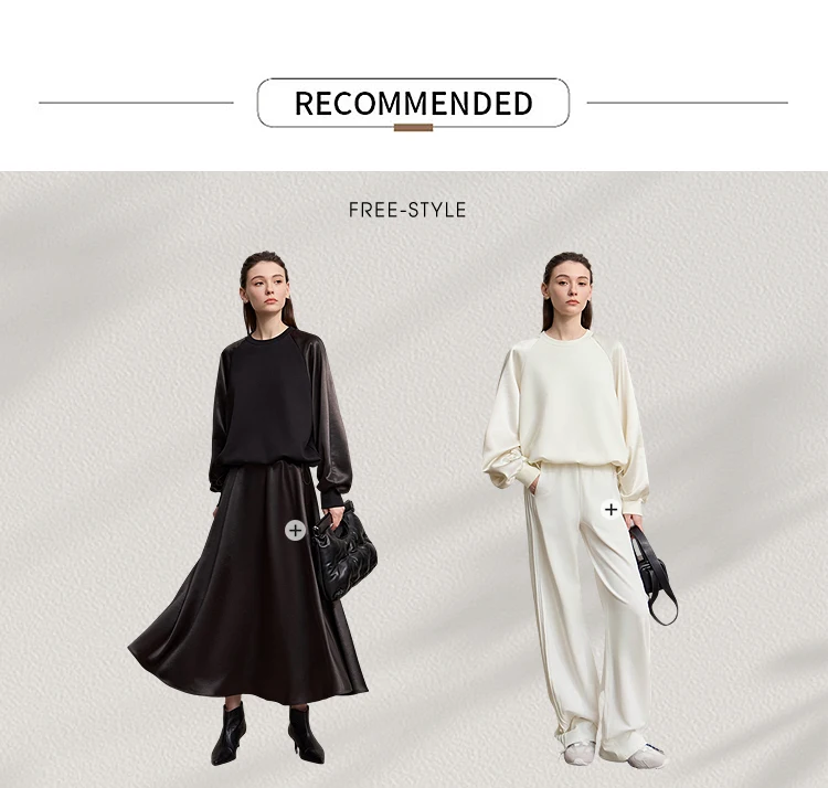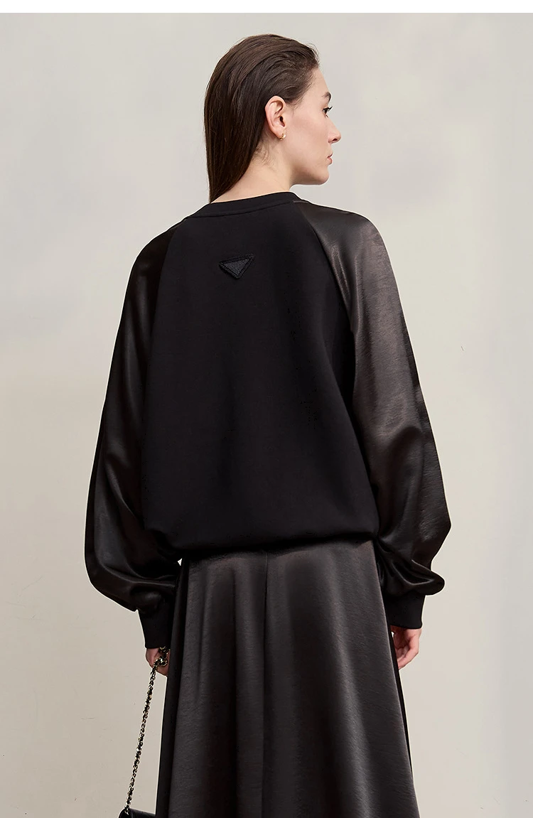 AMII Woman Sweatshirts 2025 Autumn Minimalist O-Neck Loose Casual Top Women Patchwork Long Sleeve Sweatshirts For Women 12543175