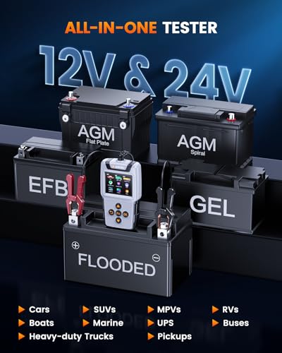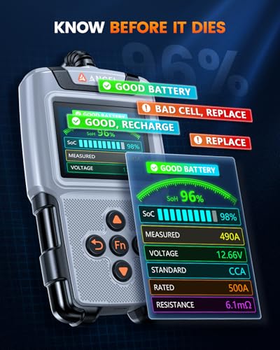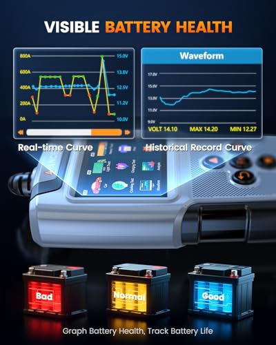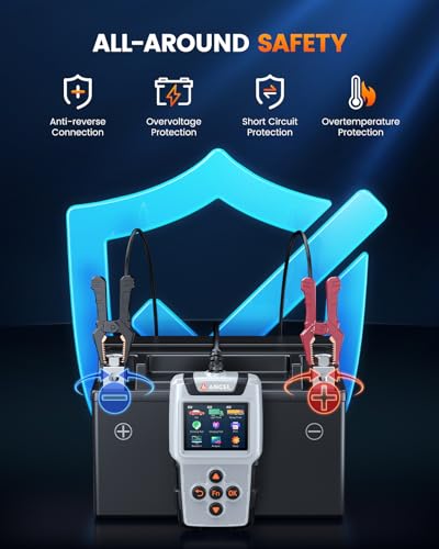 Upgraded Color Screen: Featuring a 2.8" TFT high-contrast color screen, this tester delivers vibrant, clear visuals that make battery data easy to interpret—even in direct sunlight or dim workshop lighting. the user-friendly layout makes complex data easy to understand for both professionals and DIY users3 Essential Tests in Seconds: Battery Health Test checks voltage, CCA, and capacity to reveal battery condition; Cranking Test monitors voltage drop during startup to pinpoint weak batteries or starter issues; Charging Test measures alternator output to detect undercharge or overcharge—giving you a complete diagnostic solution for reliable drivingSafe & Secure Testing: Built-in reverse polarity and short-circuit protection keep both you and your battery safe, even with wrong connections. Upgraded clamps offer a stronger grip and better insulation for worry-free testing.User-Friendly Design: Enjoy true plug-and-play use with no external charging or battery required. Multi-language support (13 languages including English, Chinese, and German) makes it ideal for global users. Stores up to 1400 test records across battery, cranking, charging, and voltage curve tests for easy review anytime.? Give the Gift of Reliable Starts & Road-Ready Confidence ?As winter tightens its grip and journeys stretch longer, help your loved ones stay ahead of battery trouble. The BA101 Pro isn’t just a tool — it’s peace of mind in their glove box. Detect weak batteries before they fail, prevent no-start surprises in freezing temps, and keep trucks, RVs, boats, and farm equipment running strong through every season