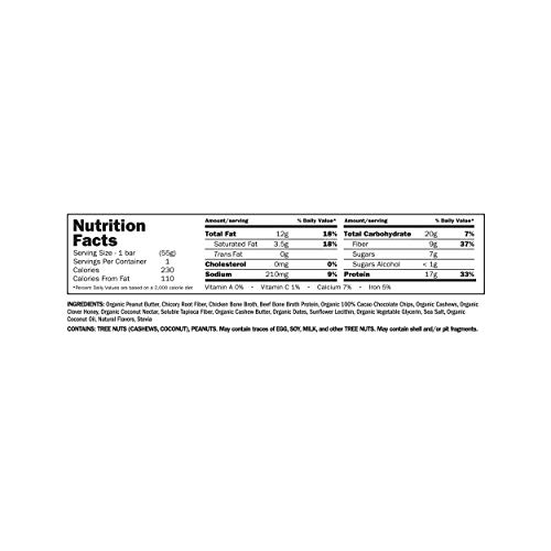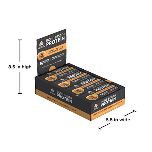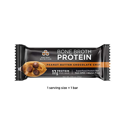 Ancient Nutrition Bone Broth Protein Bars, Peanut Butter Chocolate Chip, Dairy Free, Gluten Free, Naturally Flavored Snack Bar, 17g Protein, 12 Count Pack
