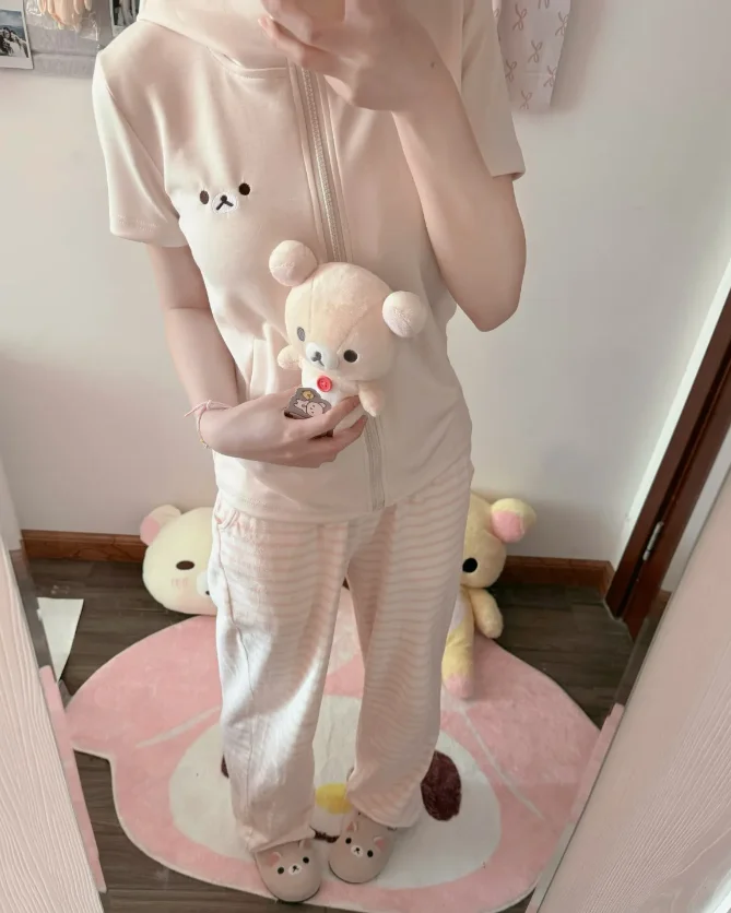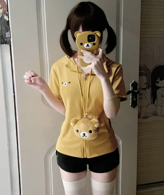 Anime Rilakkuma Hoodie Cute Coat Couple Style Long Sleeve Top Women Clothing Rilakkuma Series Coat Hoodies Zip Up Outerwears