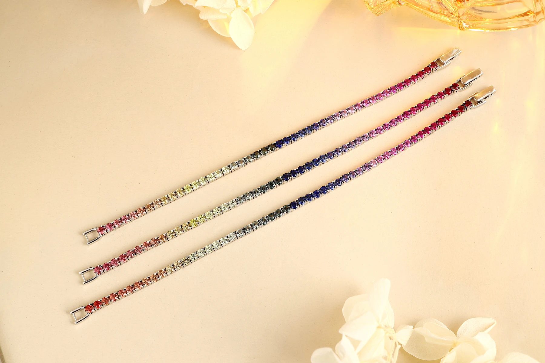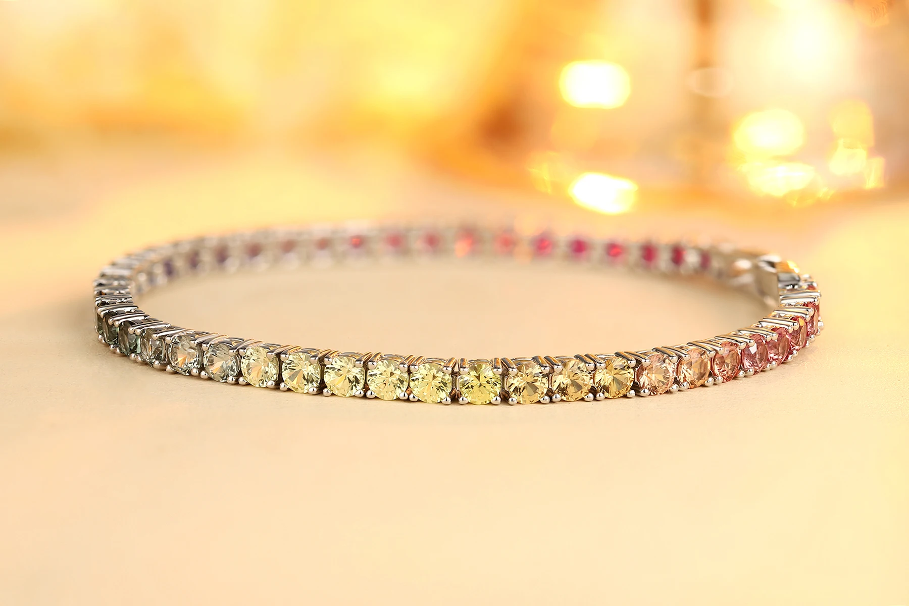 Anster Gradient Rainbow Sapphires 3.0mm Round Shape Tennis Bracelet S925 Unisex Fashion Jewelry Lab Grown Color Sapphires Custom
