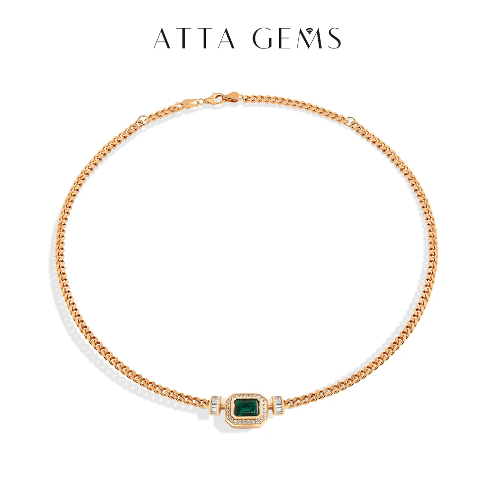 ATTAGEMS Vintage Luxury Lab Zambian Emerald Necklace Women Men s925 Sterling Silver Punk Cuban Chain Party Fashion Jewelry Gifts