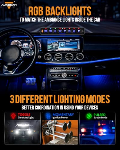 Auxbeam 8 Gang Slim Switch Panel RGB AS-R80 Automatic Dimmable Switch Panel with Toggle Momentary Pulsed LED Control Panel Off Backlight 12-24V for Truck Offroad Car Boat Waterproof, 2-Year Warranty