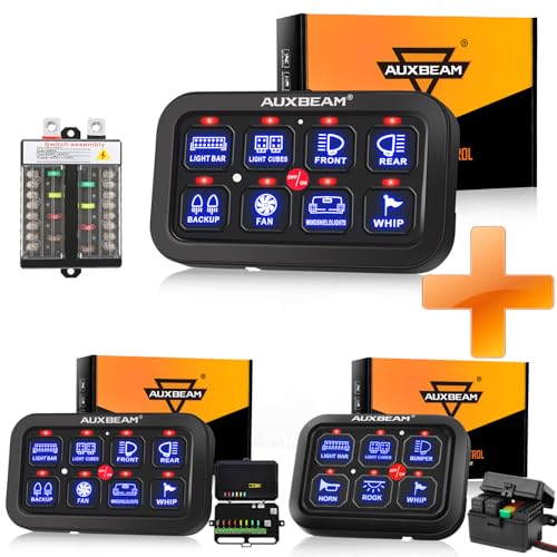 8 GANG SWITCH PANEL: Operating voltage: DC 12-24V, max current: 60A, rated voltage: 12V 20A / 24V 10A; operating at 12 Volts: max power rating of 600W, operating at 24 Volts: max power rating of 1200W; operating temperature: -40℉ - 221℉, IP65 waterproof rate. GC60 6 GANG SWITCH PANEL - Operating voltage: DC 12V; Max power rating: 720W. Max current rating: 60A.Automatic Dimmable Function: Newest 6/8 gang switch panel have automatic dimmable feature, the backlight brightness of the switch panel will change according the brightness of environment. The brighter the environment is, the brighter the backlight will be. The perfect 8 gang switch panel automatic dimmable designed, giving you a different user experience and ensuring your driving safetySafety Protection: Auxbeam 8 gang switch panel is built-in solid state relay, not the external relay, provide over-voltage protection, reverse polarity protection, over-current protection, thermal protection, come with additional fuses for replacement, providing all your connected LED lights & accessories work safely.Easy Installation: No complicated wiring, no need to cut a big hole on your vehicle. Plug & play wiring harnesses ensuring you to connect the led lights or accessories easily. Two types of mounting bracket, you can install it anywhere you need. You can customize your personal switch panel with 60pcs self-adhesive labels. The best way to clean up all the wiring and add a single panel to control everything.Wide Application & Warranty: Taking limited space on some vehicles into account, this more compact size switch panel control system is perfect for all situations. Auxbeam switch panel more suitable for your needs, such as truck, boat, off road, powersport, marine, atv, utv, suv, car, bus, heavy duty etc. 2 Year Manufacturer Warranty: free replacement for any quality problems by non-human reasons.