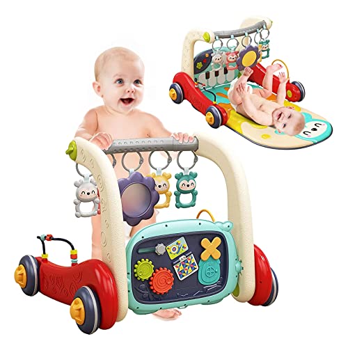 2-IN-1 Play Mat: the baby play mat features baby play mat gym and baby walker functions together which can attract your baby’s attention and let your baby have great fun playing on the gym mat.Early Development: the baby activity gym fully meets the baby's growth needs of visual, touch, and recognition. Baby can sit, sleep, play, kick and stand on the baby gym mat together learn how to walk with the baby walker.Thick and Soft: the baby gym play mat made of high quality fabrics with smooth surface is safe and comfortable for baby to play with, we use thicker material to ensure that you baby can sit and sleep more stably on the baby gym mat.Multi-Functional Piano Walker: the baby gym play mat can provide your baby plenty of space for happy tummy activities and games, the baby walker has 4 piano keys can help baby recognize rhythmic tapping and to experience more fun and new challenges.Easy Installation: the activity baby gym is super easy to set up, and it is easy to fold for storage and carry for travel. Please feel free to contact us if you have any question about your purchase via the official after-sales mailbox.