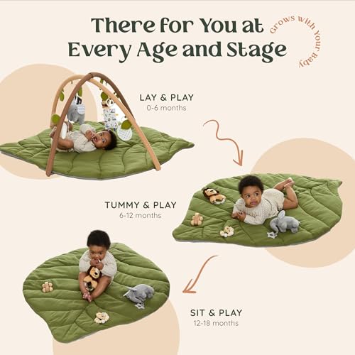MUST HAVE ACTIVITY CENTER: Featuring a charming leaf design and modern colors, this baby play mat enhances any nursery decor. It is a perfect baby shower gift for any expectant parent searching through a baby registry.6 DETACHABLE TOYS INCLUDED: The play mat comes with six detachable tummy time toys that foster sensory development, making it an engaging activity center for baby. Ideal for newborn toys 0-3 months and baby toys 0-6 months.PROMOTES SENSORY AND MOTOR DEVELOPMENT: Designed to encourage motor skills and sensory play, this mat serves as a baby play gym. It is a must-have for those searching for baby gifts that support early development.IDEAL BABY SHOWER GIFTS: This tummy time mat is a baby essentials for newborn. It complements other baby essentials deals, ensuring it will be a cherished addition to any baby registry search.