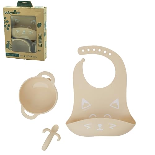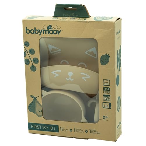 IDEAL FOR INFANTS: The Babymoov FIRST'ISY baby mealtime kit was designed for the first stage of food diversification for children aged 6 to 12 months who are just starting to eat solids.HIGH-QUALITY SILICONE: This feeding set includes a bowl, a spoon and a bib, all made from BPA-Free and certified non toxic food grade silicone. The bib features a food catcher and an adjustable notched fastening.OCCUPATIONAL THERAPIST DESIGN: The small spoon with its ergonomic handle is ideal for little mouths: its built-in teething ring on the sides will soothe baby once their teeth start coming through.NON-SLIP BOWL: the bowl has a non-slip suction pad so it sticks to the table or the high chair tray. No more risk of baby's food falling onto the floor!MICROWAVE & DISHWASHER SAFE: The bowl, spoon and bib of the FIRST'ISY mealtime kit are microwave-safe and are dishwasher-proof for easy use and care.