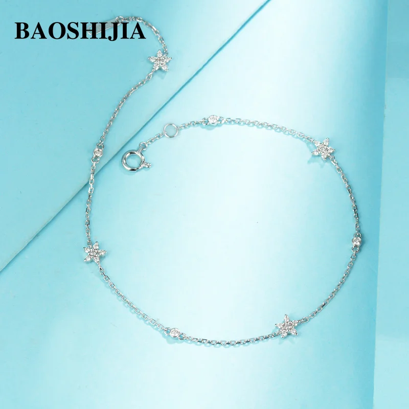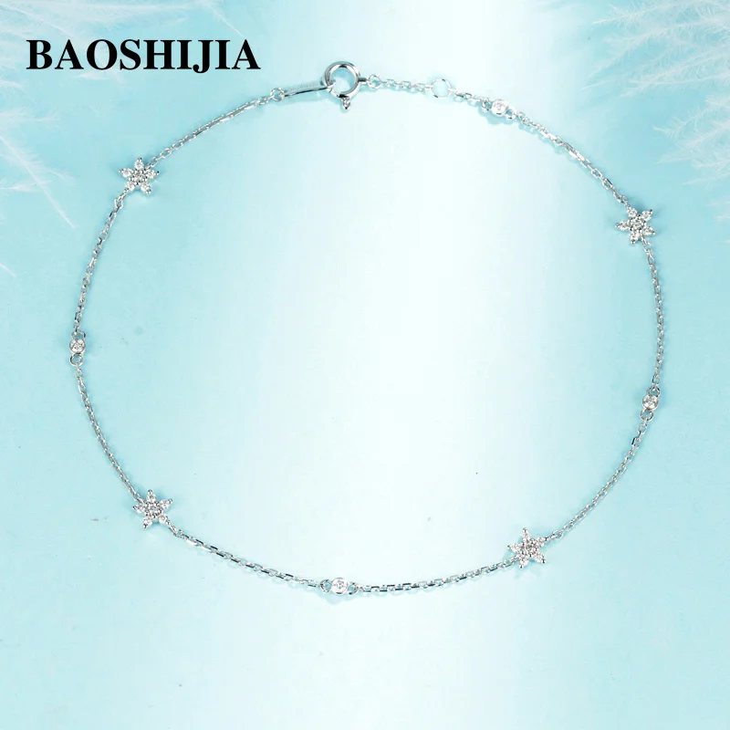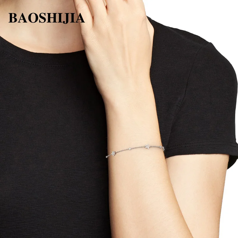BAOSHIJIA Solid 18k White Gold Flower Natural Diamonds Bracelet Fashion Delicate Jewelry Valentine's Day Present