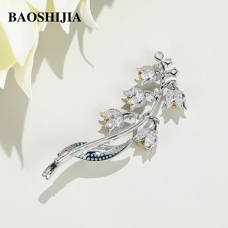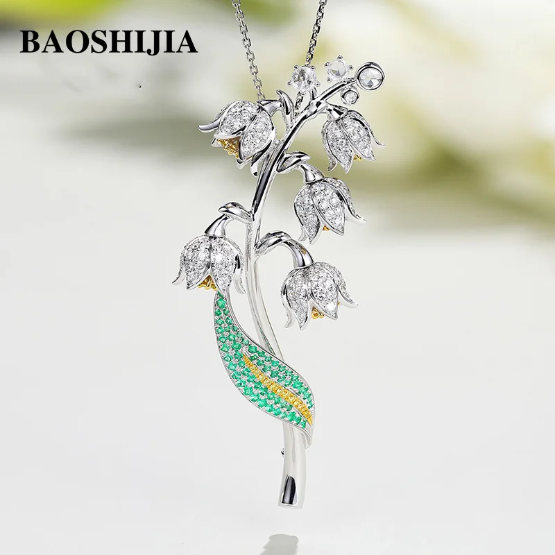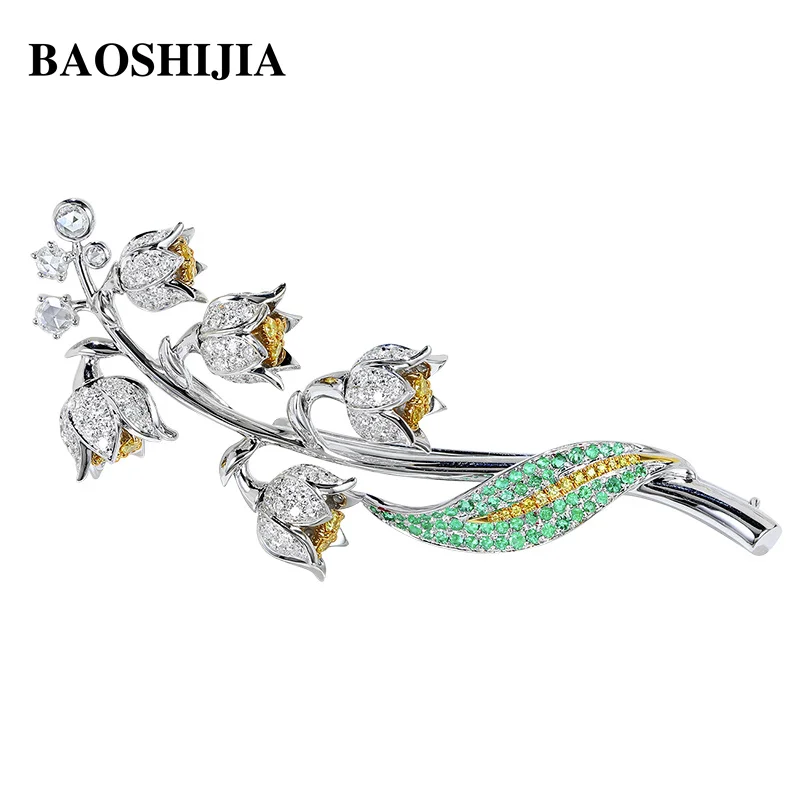 BAOSHIJIA Solid 18K White Gold Natural Real Diamonds Flower Brooch/Pendant Ladies Temperament Fashion Jewelry Beautyful Wedding
