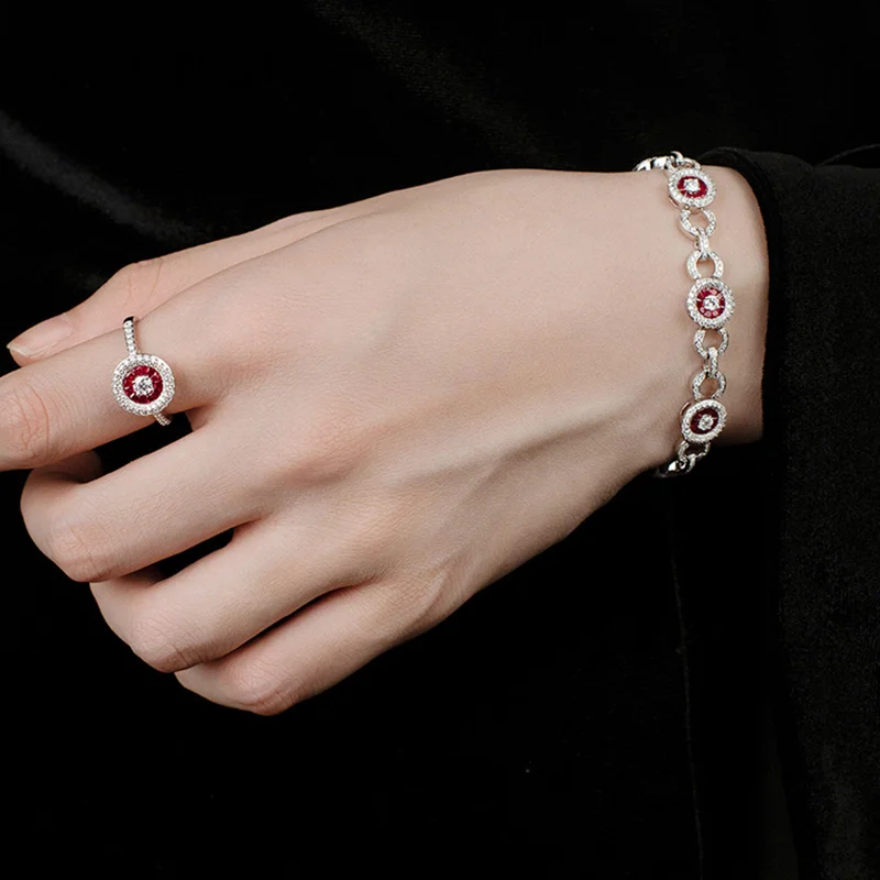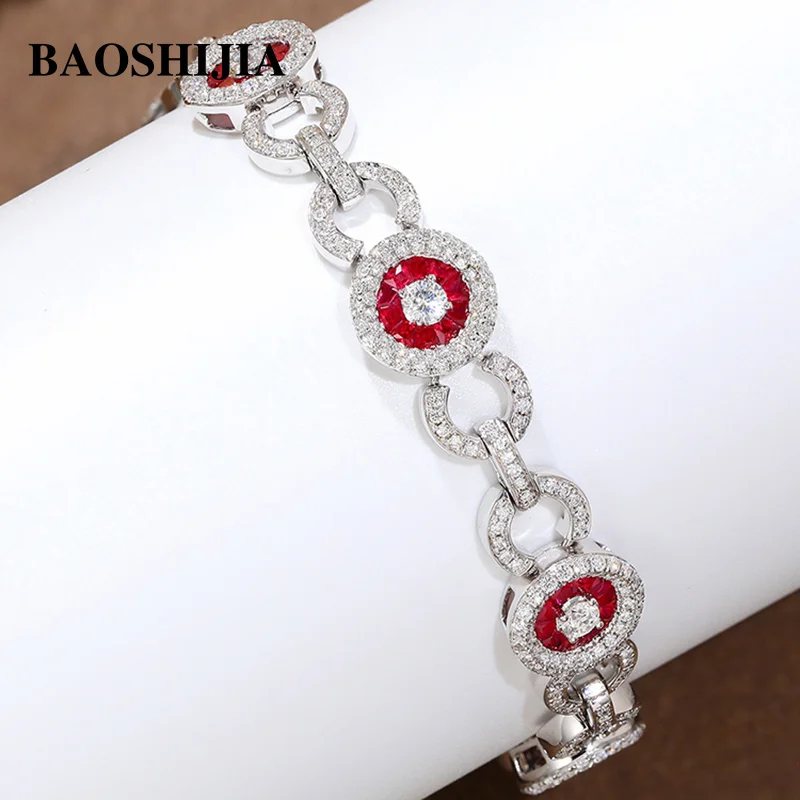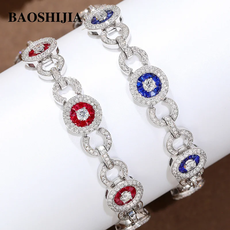 BAOSHIJIA Solid 18K White Gold Natural Rubies & Sapphires SI Diamonds Bracelet Valentine's Day Present Fashion Luxurious Jewelry