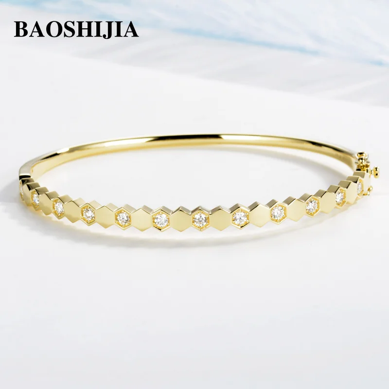 BAOSHIJIA Solid 18K Yellow Gold Fashion Natural Diamonds Bracelet Custom Jewelry Precious Exquiste Art Deco