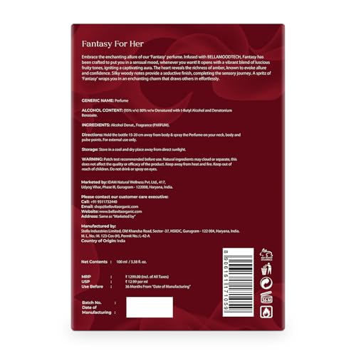 BELLAVITA Luxury Mood Collection FANTASY Perfume for Women 100ml , Pheromone Inspired Technology Long Lasting Fragrance , Notes of Pink Pepper, Orange and Saffron , Floral, Spicy Premium Fragrance