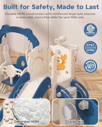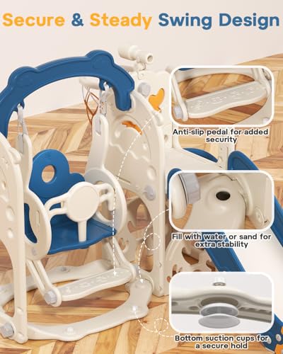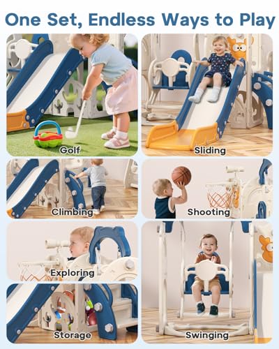 Stable Swing & Extra Long Slide – The toddler swing set is reinforced with suction cups and a water-fillable base for extra stability. The freestanding slide features an extended track and wide waiting area, giving kids more space to play safely indoors or outdoors7-in-1 Multi-Activity Playset – This toddler playground includes a climbing ladder, slide, swing, basketball hoop, golf game, telescope, and a storage area for toys. A complete indoor toddler playground that keeps children active and entertained year-roundEasy Assembly & Compact Design – Designed for busy parents, this swing and slide set is simple to assemble and disassemble without extra tools. Perfect for setting up a children’s playground at home, backyard, or playroom in minutesIdeal Gift for Kids Ages 1-6 – A fun toddler outdoor playset that encourages climbing, sliding, swinging, and pretend play. Great for birthdays, holidays, or everyday fun, it’s a perfect playground equipment set for toddlers and young children to enjoy at home or outdoorsDedicated After-Sales Support – BIERUM provides 24/7 customer service. If you have any questions about the toddler swingset or play equipment, our team is always here to help, so you can shop with confidence