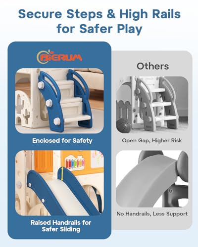 Safe & Durable HDPE Material – This toddler slide set is made of sturdy, non-toxic HDPE and ASTM certified for child safety. Rounded edges and a stable design keep toddlers secure during climbing and sliding fun13-in-1 Multi-Activity Playset – Features a toddler slide, basketball hoop, golf game, drawing board, telescope, ring toss, xylophone, toy car, climbing tunnel, and more, creating a full toddler playground at homeStable & Extended Slide Design – Extra-long slide track, wide waiting zone, and reinforced frame provide a secure play experience. Perfect as an indoor toddler slide or outdoor toddler slide that resists wobblingEasy Assembly & Compact Storage – Designed for parents’ convenience, this toddler slide set assembles quickly and can be stored or moved with ease. Great as a toddler indoor playground or outdoor toddler playsetIndoor & Outdoor Fun for Ages 1+ – Whether in a playroom, living room, or backyard, this kids playground provides endless play. A perfect toddler playset gift for kids ages 1-6 to develop motor skills and imagination