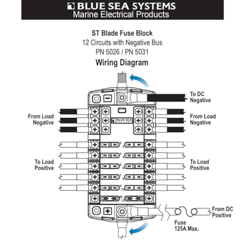 Blue Sea Systems 5031 ST Blade Fuse Block 12 Circuit with Ground, 100 Amps