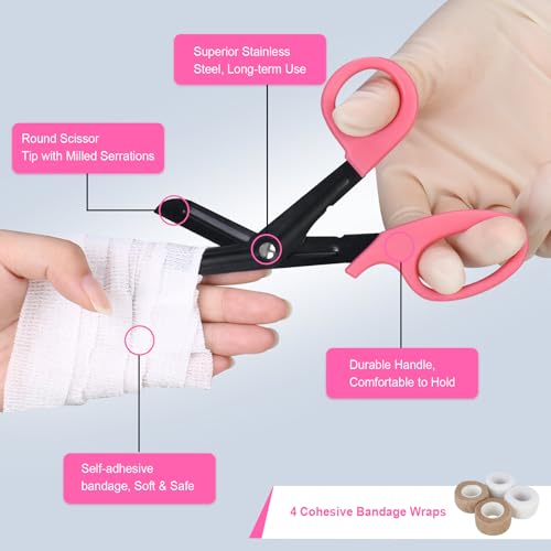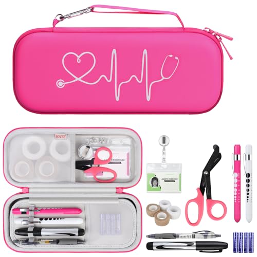 BOVKE 15 Pcs Stethoscope Case Kits Include Supplies, Portable First Aid Kit Bag Contains Stethoscope Case, Penlights, Bandage Wraps, and Other Nursing School Tool Essentials, Raspberry