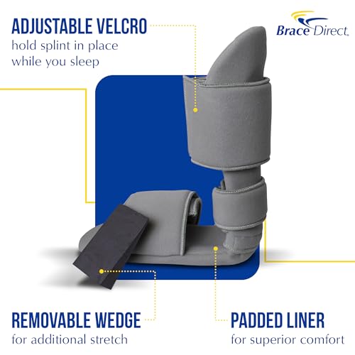 ✅ Unisex Sizing: Small fits men’s shoe sizes 5–6.5, women’s 7–8.5. Medium fits men’s 6.5–10.5, women’s 8.5–12.5. Large fits men’s 10.5–12.5, women’s 12.5–14.5. X-Large fits men’s 13+, women’s 15+.✅ BREATHABLE DESIGN: Premium washable and breathable padded lining ensures maximum airflow, preventing skin irritation and blisters.✅ CUSTOMIZABLE FIT: Three medical-grade fasteners allow for a snug, adjustable fit, ensuring maximum comfort and effectiveness.✅ STRETCHING FOAM WEDGE: Elevate your foot for greater flexion or rest it in a neutral position with our removable foam wedge.✅ PERSONALIZED SUPPORT: Reach out to Brace Direct (an American Owned Company) to schedule an appointment with a fitting professional for a free video fitting and adjustment session to achieve the perfect fit.