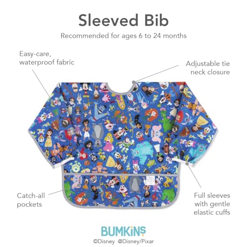 Bumkins Disney Sleeved Bib for Girl or Boy, Baby and Toddler for 6-24 Mos, Essential Must Have for Eating, Feeding, Baby Led Weaning Supplies, Long Sleeve Mess Saving, 100 Magical Celebration