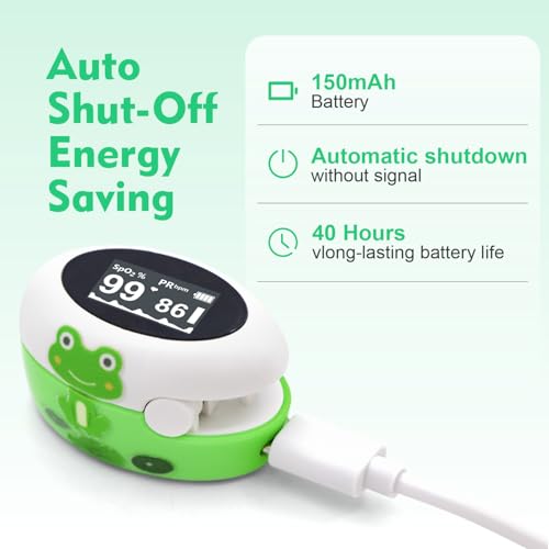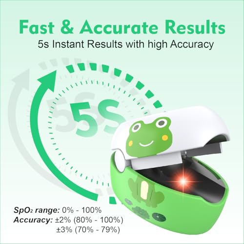 ❤ EASY TO USE : Wear the oximeter to start and in just seconds, you can track your oxygen saturation levels easily, perfect for daily or sports use. The device powers down after a period of inactivity❤ Engage Young Minds with Creative Fun : Comes with 2 sets of cute DIY frog stickers, encouraging children's hands-on ability and making the device more friendly and engaging❤ DESIGNED for SPORT & HEALTH ENTHUSIASTS: Suitable for sports enthusiasts such as mountaineers, skiers, cyclists, or anyone interested in measuring SpO2 and pulse rate❤ Rechargeable & Power Efficient: Equipped with a modern Type-C charging port. The built-in low power consumption function automatically shuts down to save energy❤ KINDLY NOTES : This device is intended for sports and aviation use only, not for medical use