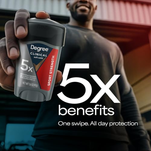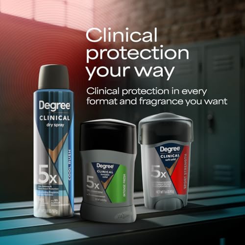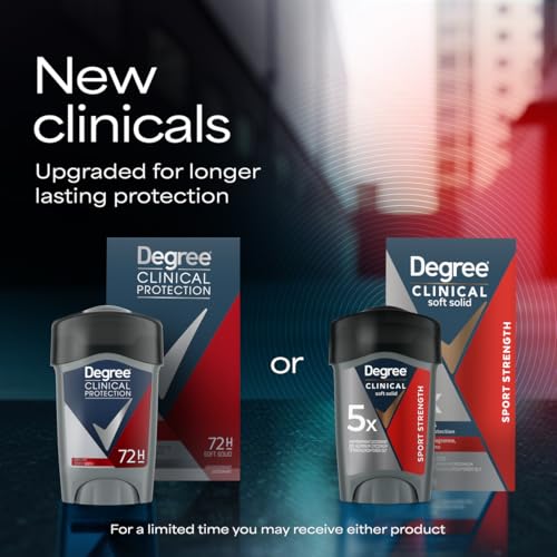 PRESCRIPTION-STRENGTH PROTECTION: Active lives need Degree Men Clinical Protection Sport Strength Antiperspirant Deodorant. This antiperspirant delivers prescription-strength wetness protectionMOTIONSENSE TECHNOLOGY: Our breakthrough MotionSense technology works in sync with your body all day long. This deodorant for men releases a subtle burst of fragrance every time you moveREADY FOR WHAT’S NEXT: Take on the day with Degree Men Clinical Protection Sport Strength Antiperspirant Deodorant stick. Simply twist, glide, and moveUNSTOPPABLE FRESHNESS: Stay fresh, longer with Degree Men Clinical Protection Sport Strength Antiperspirant Deodorant as it features a clean, masculine scent to keep you feeling energizedRECYCLE WITH DEGREE: As well as increasing our use of reusable materials, we’re making it easier for you to recycle our antiperspirant and dry spray packaging