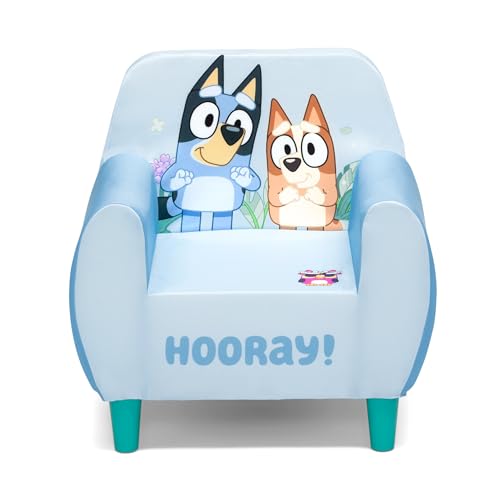 RECOMMENDED USE: Ages 3 years+ | Holds up to 100 lbs. | Taller seat height makes this chair ideal for older childrenFOR BLUEY FANS: This super-cool chair features bold graphics of Bluey and BingoYOUR ANYWHERE CHAIR: A foam chair with high back and padded arms creates a cozy, kid-sized spot | Modern wood feet ensure the chair looks great in any space | It’s a cozy spot for kids to read, watch TV or just relaxPERFECTLY SIZED: Assembled dimensions: 21.625”W x 16.125”D x 22”H; Seat height: 10.5”H; Seat width: 13”; Seat depth: 11.5”; Chair back height: 12”SAFE OPTION: This chair meets or exceeds all safety standards set by the CPSC