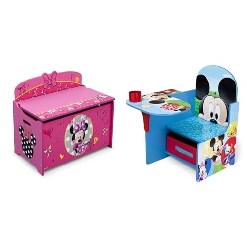 Delta Children Deluxe Toy Box, Disney Minnie Mouse & Chair Desk With Storage Bin, Disney Mickey Mouse