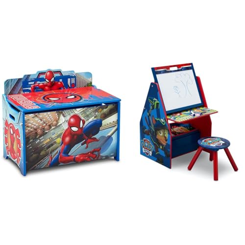 Delta Children Deluxe Toy Box, Spider-Man & Kids Easel and Play Station – Ideal for Arts & Crafts, Homeschooling and More, Nick Jr. PAW Patrol - Greenguard Gold Certified, Drawing