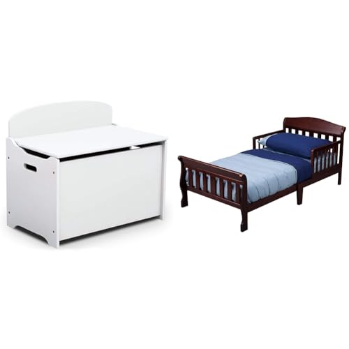 Product 1: PERFECT SIZE: Assembled Dimensions: 23.5”W x 14.25”D x 21”H; Interior storage size: 23”W x 12.5”D x 12.25”H; Provides 2.05-cubic feet of storage capacity to tuck away all those toysProduct 2: Transitional platform style and designProduct 2: The product features shipping dimensions of (in inches): 21.75 (width) by 4.25 (height) by 32.35 (depth)Product 2: Meets or exceeds all safety standardsProduct 2: Guard rails included to keep child safe
