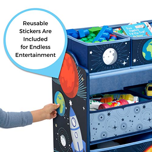 GREENGUARD GOLD CERTIFIED: This toy bin meets the most stringent chemical emissions standards to create a healthier home for your child. Tested for more than 10,000 chemicals and VOCs, this toy bin is certified to contribute to cleaner indoor airAGE RANGE: Recommended for ages 3+FUN SPACE THEME: Features a fun and vibrant, space and galaxy theme | Makes cleaning up and tidying their space fun | | Kids will love arranging the incldued reusable vinyl cling stickers to the sides of this organizer to create a new story every time they playWE PUT YOUR CHILD'S SAFETY FIRST: Bin meets or exceeds all safety standards set by the CPSC | Made of engineered wood, solid wood and fabricSIZE: Assembled dimensions: 24.61"L x 11.81"W x 26.57"H | Easy assembly