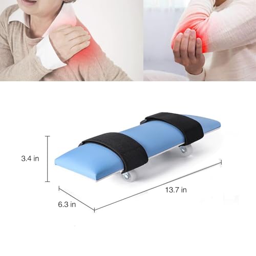 Training Methods: The arm skateboard rehab is equipped with 4 360° swivel wheels, no matter what your muscle level is, as long as your arm is fixed on the training skateboard, you can freely choose shoulder training, elbow training, shoulder and elbow training and auxiliary training.Comfortable To Use:The elbow training skateboard is made of PU leather with sponge padding inside, very comfortable and breathable.2 adjustable elastic straps can fix your elbow, don't worry about the elbow pads slipping off your elbow, protect your arm from being bound.Restore Shoulder And Elbow Health: The arm slider is a physical therapy aid. It can help you stretch in different directions, improve shoulder mobility and ultimately rehabilitate your shoulder after surgery or injury. Effective exercise methods can speed up recovery time and completely restore shoulder health.Rehabilitation effect: Rehabilitation skateboard helps rehabilitation patients to improve the flexion and extension function of the shoulder and elbow joints, enhance the strength of shoulder muscles, and regular exercise can achieve the rehabilitation and maintenance effect of the core muscles of the upper and lower limbs.Rehabilitation Skateboard Goal Your Satisfaction: Your satisfaction is our goal! If you have any questions about our shoulder arm rehabilitation skateboard, please feel free to contact us. We guarantee you will get a satisfactory solution!