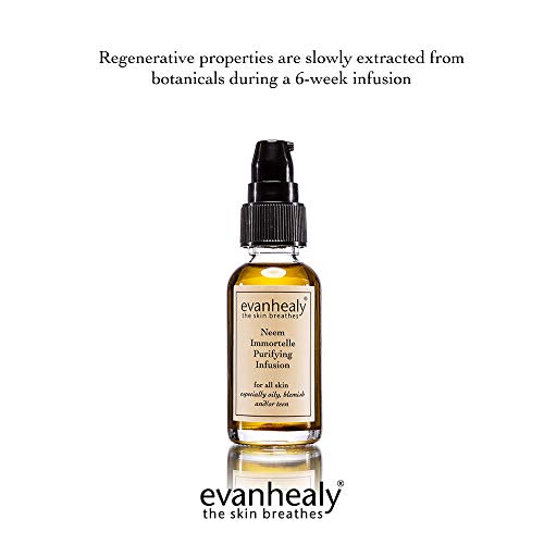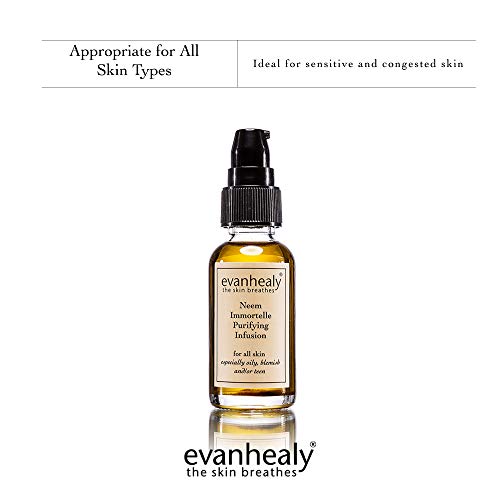 BALANCING FACIAL SERUM - Purifying Infusion is a daily treatment oil that assists the skin in decongesting clogged pores, reducing signs of redness and sensitivity. As a natural pore reducer, it noticeably improves the appearance and vitality of your skin.AYURVEDIC HERBAL OILS - Made with a remarkable blend of two deeply balancing herbal infusions that are rich in vitamin e oil. Its regenerative botanical properties are slowly extracted from organic sesame oil-cured Indian lilac, one of Ayurveda’s most effective treatments for skin, and immortelle infused in olive oil over a 6-week period.GENTLE ON SKIN - This deeply harmonizing face oil works to cool, cleanse and nourish all skin types, bringing a health and beauty balance to all skin types, especially sensitive and congested.CLEANSER & SERUM DUO - Unlike most face serums, this multi-use oil can be applied as a skin serum, or used to oil cleanser. Gently massage it into skin and remove the excess with a damp washcloth. Follow with a moisturizer or our shea butter cream for added protection.ORGANIC SKIN CARE PRODUCTS - All evanhealy products are 100% gluten-free, non-GMO, fair trade, and cruelty free. We proudly formulate skin harmonizing essentials that are paraben free and free of synthetic fragrances.